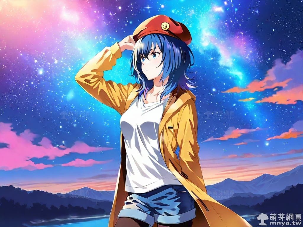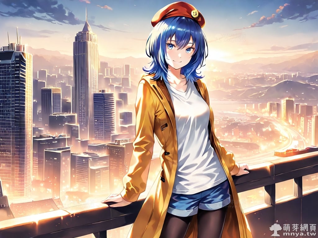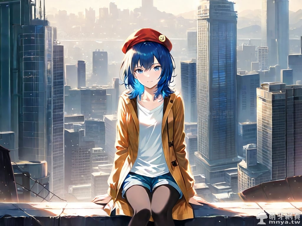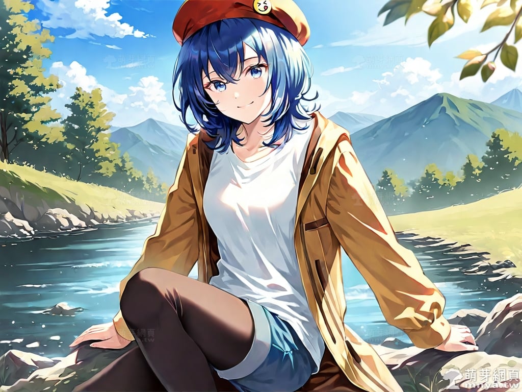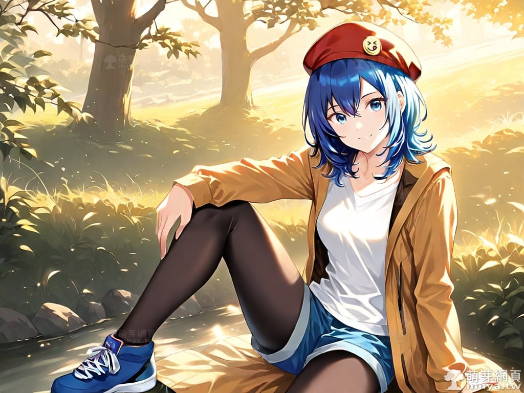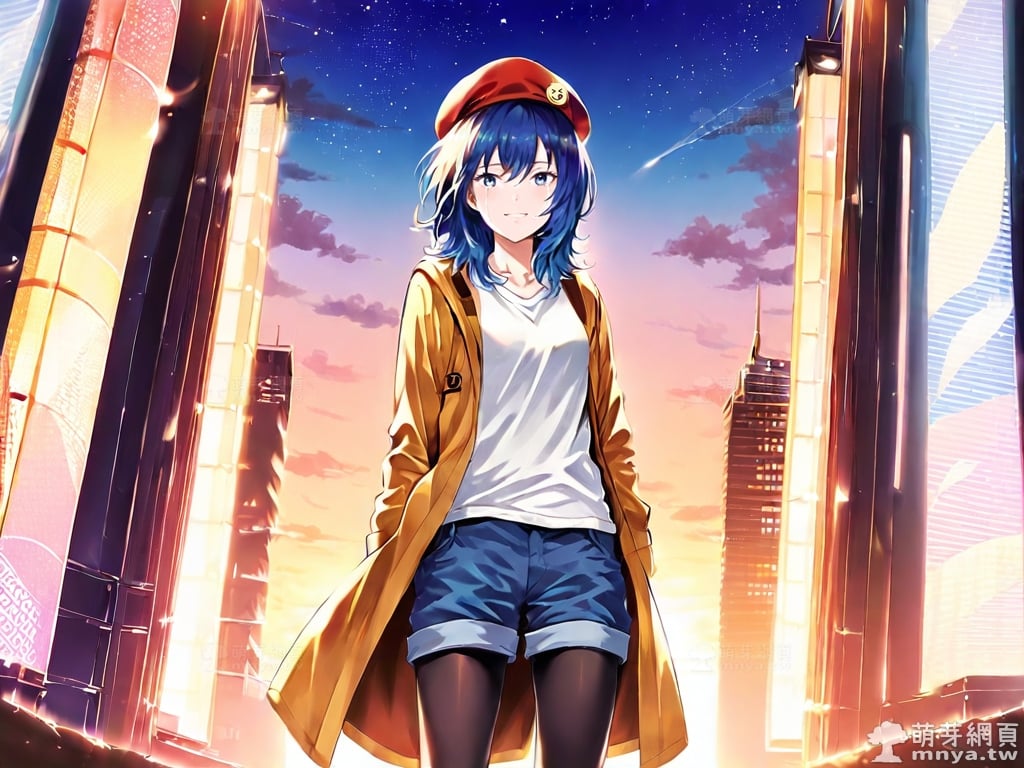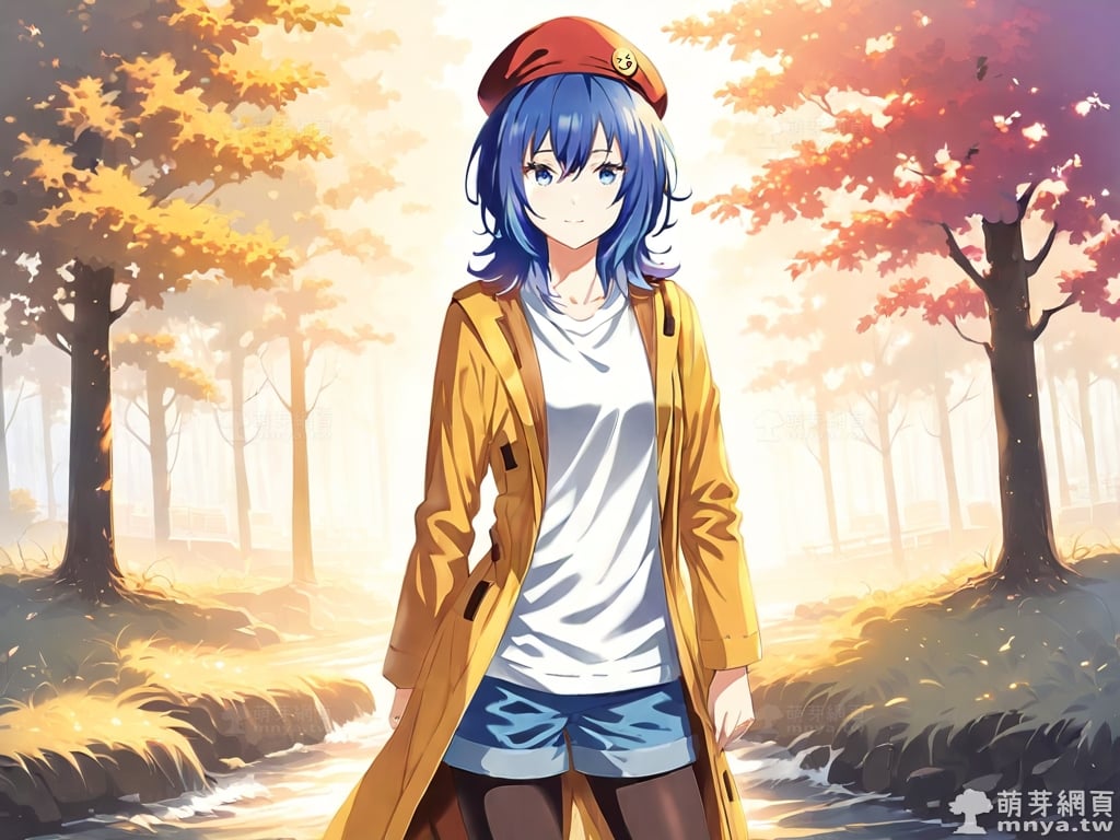 提詞文字:((masterpiece), (amazing), (vivid), (elegant), (lustrous), (flawless), (best quality):1.3), (photorealistic:0.1), 1girl, solo, (suzugamori chika:1.3), (zatsu tabi), __posture__, upper body, medium hair, blue hair, bangs, hair between eyes, blue eyes, hat, beret, red headwear, badge on the hat, badge, shorts, shirt, brown coat, coat, white shirt, blue shorts, open coat, open clothes, long sleeves, collarbone, legwear under shorts, black pantyhose, pantyhose, blue footwear, sneakers, medium breasts, breasts, cowboy shot, __looking__, __expression__, __background__. <lora:suzugamori_chika_XL:1>