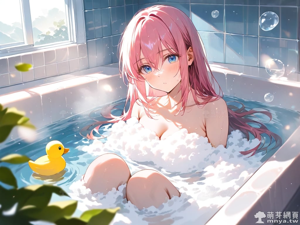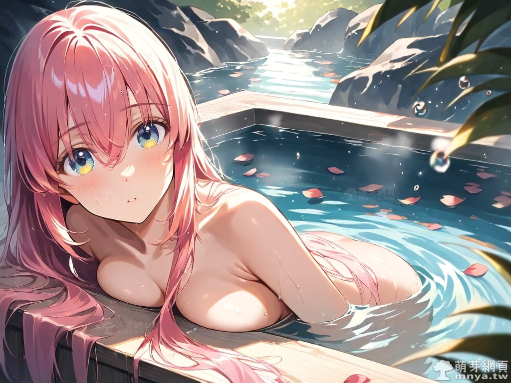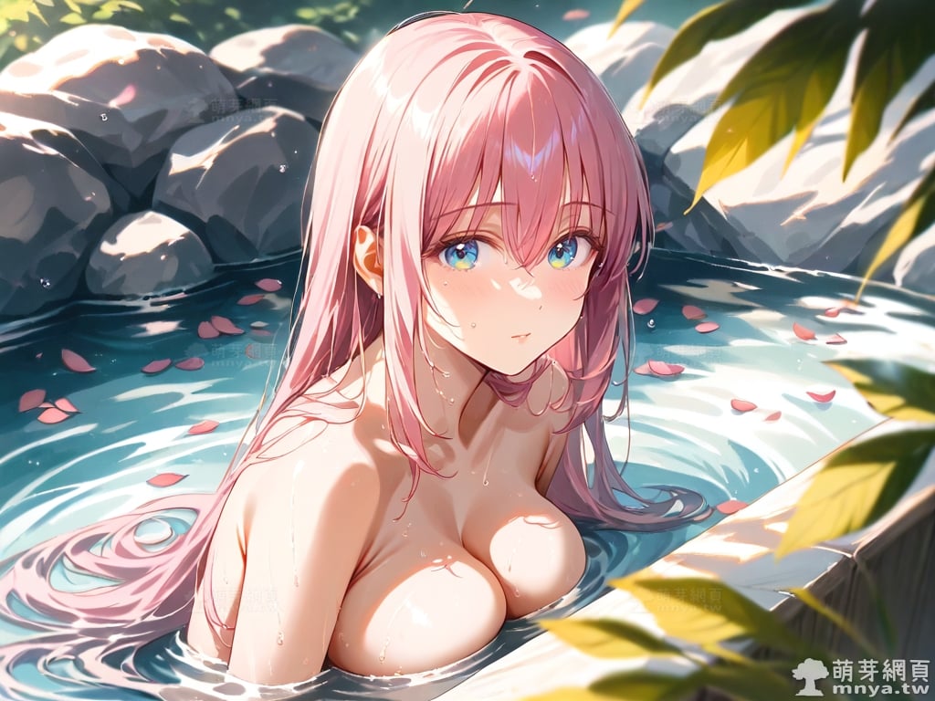 提詞文字:((masterpiece), (soft), (alluring), (high quality):1.3), (photorealistic:0.1), 1girl, solo, solo focus, (gotoh hitori:1.3), (bocchi the rock!), long hair, very long hair, pink hair, bangs, hair between eyes, blue eyes, large breasts, breasts, __bathe__.