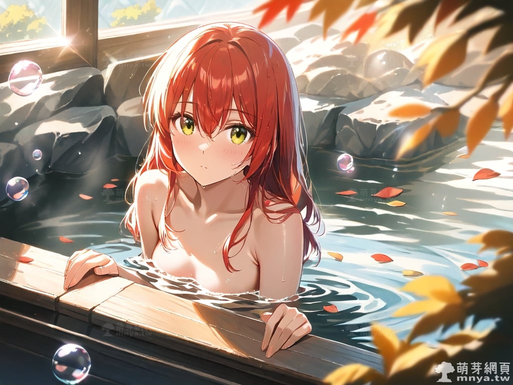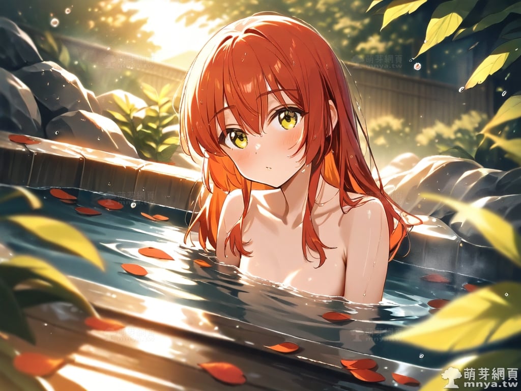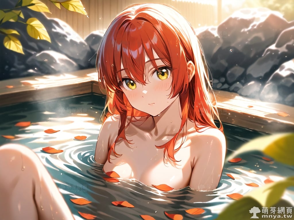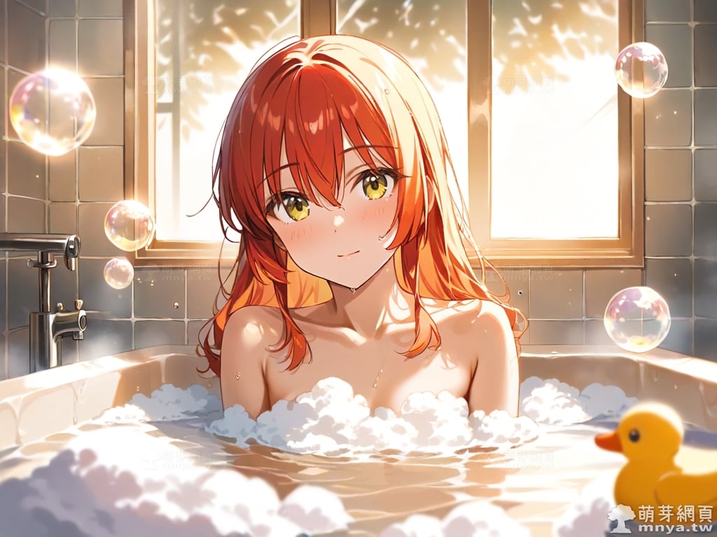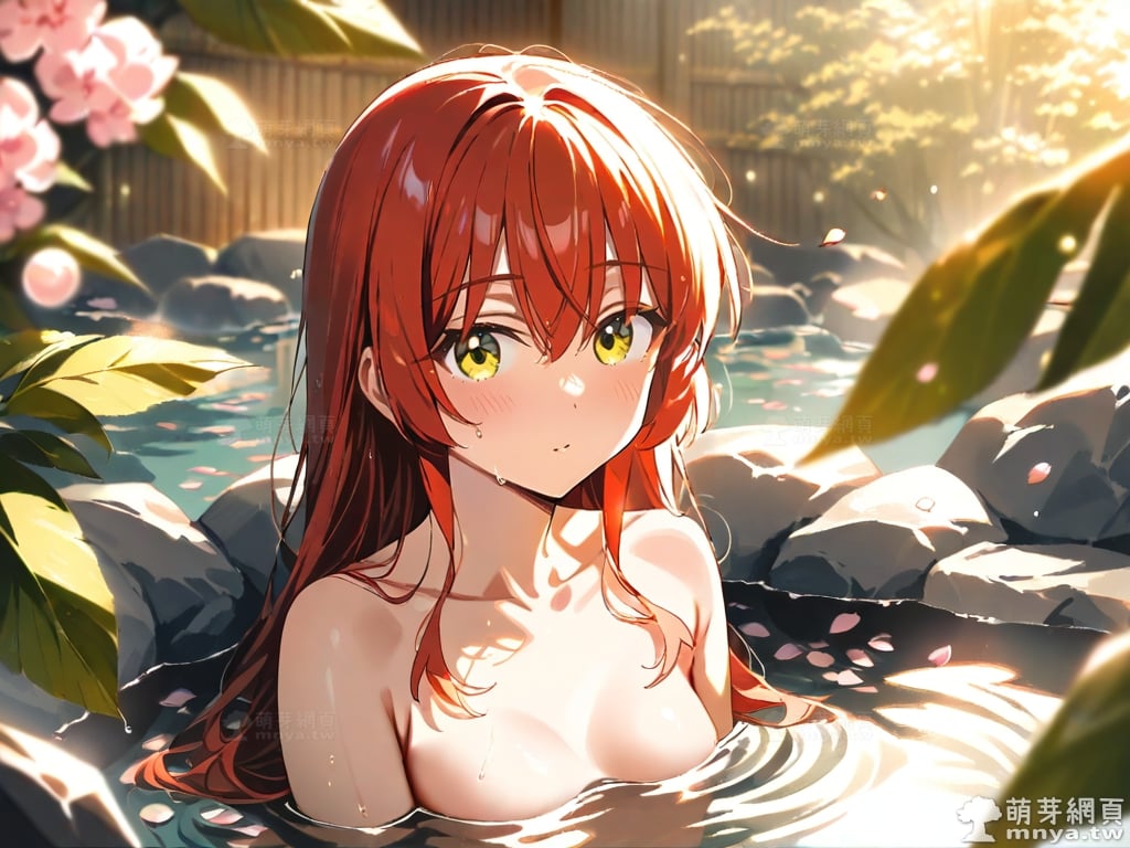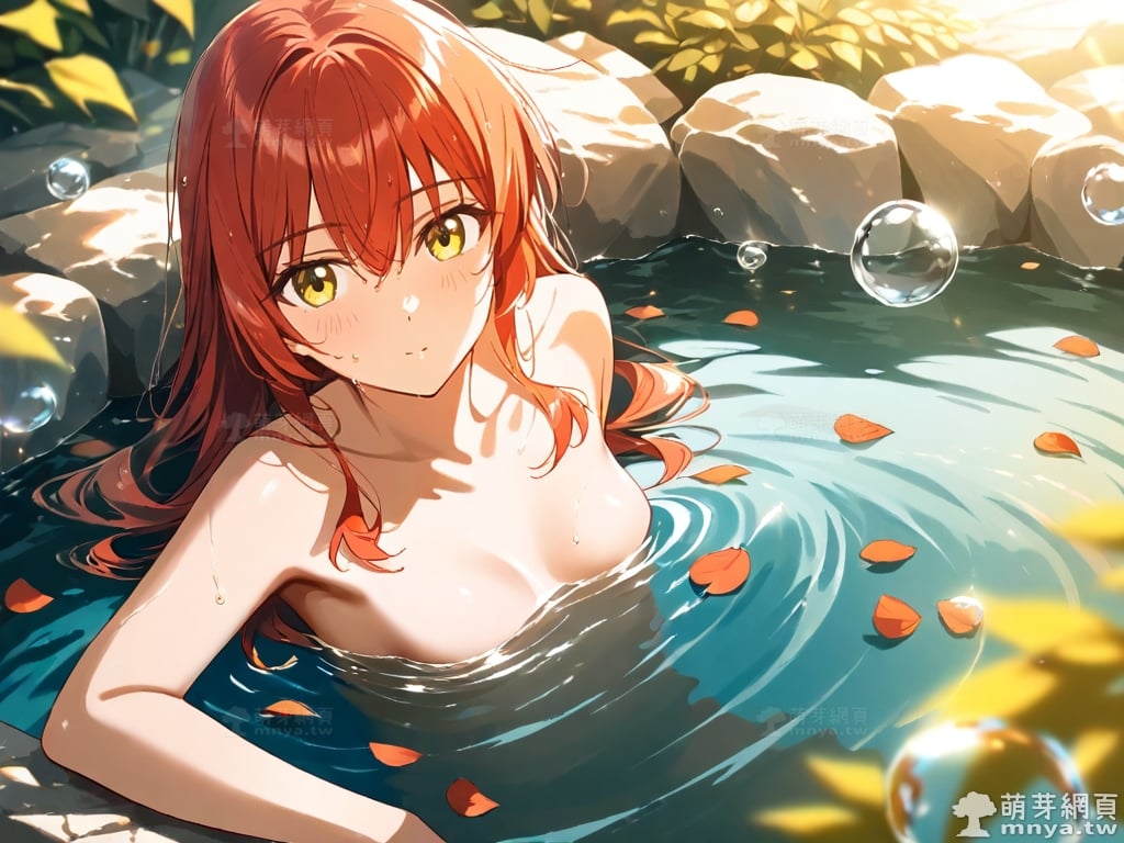 提詞文字:((masterpiece), (soft), (alluring), (high quality):1.3), (photorealistic:0.1), 1girl, solo, solo focus, (kita ikuyo:1.3), (bocchi the rock!), long hair, red hair, bangs, hair between eyes, yellow eyes, small breasts, breasts, __bathe__.