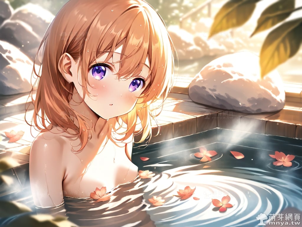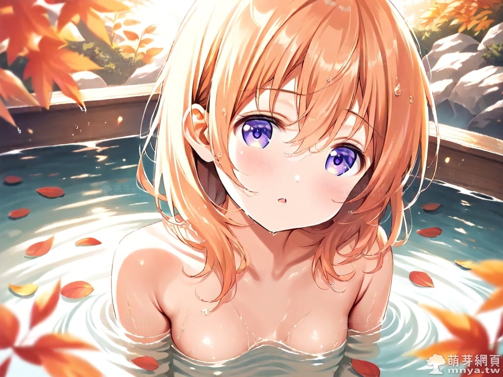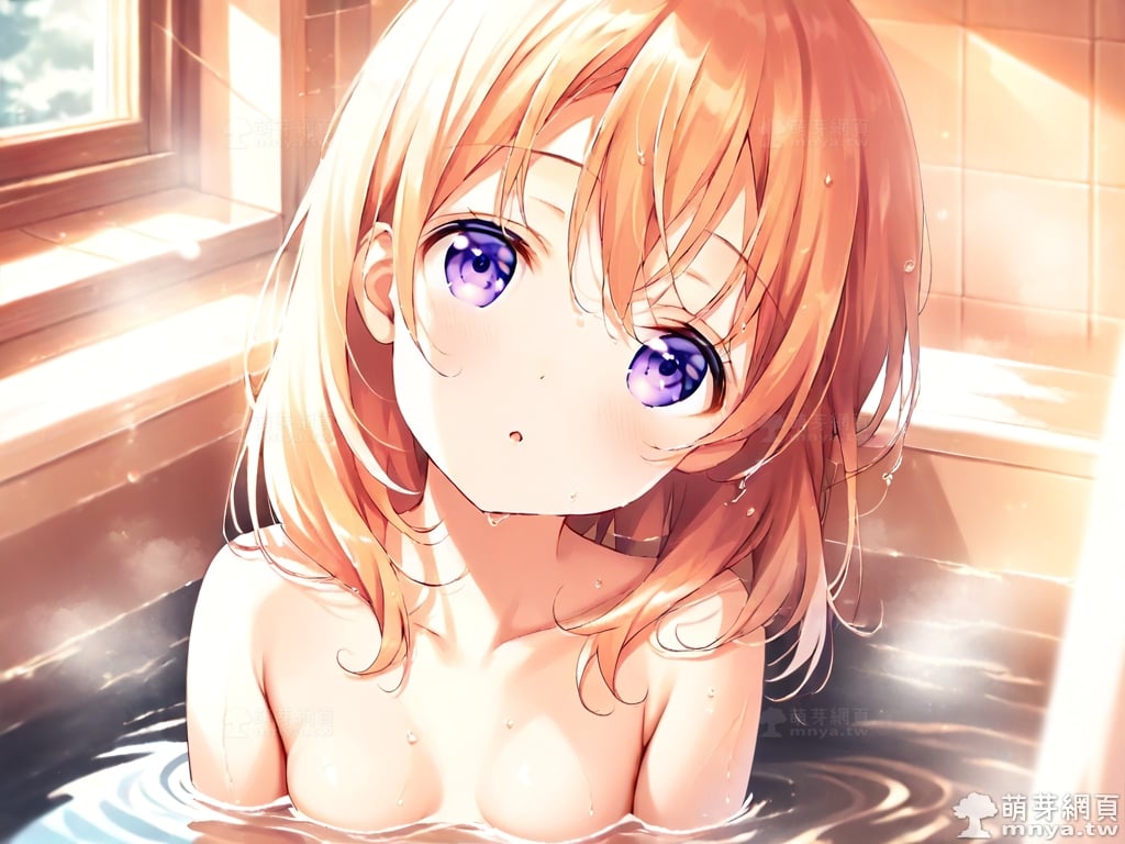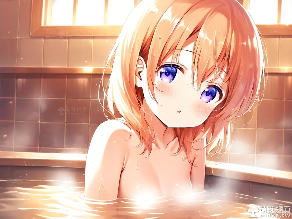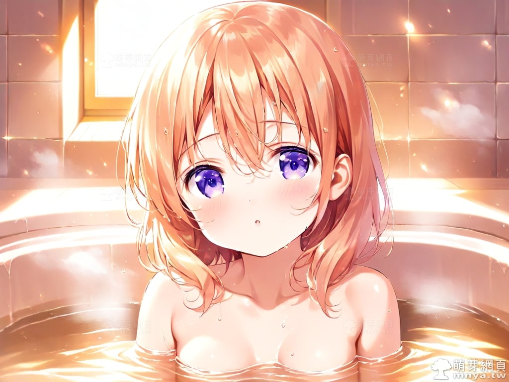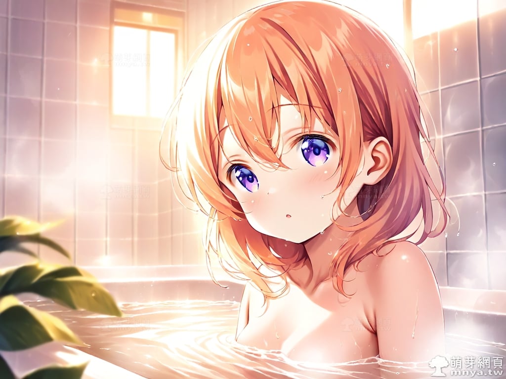 提詞文字:((masterpiece), (soft), (alluring), (high quality):1.3), (photorealistic:0.1), 1girl, solo, solo focus, (hoto cocoa:1.3), (gochuumon wa usagi desu ka?), loli, medium hair, orange hair, hair between eyes, purple eyes, small breasts, breasts, __bathe__.