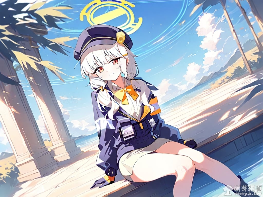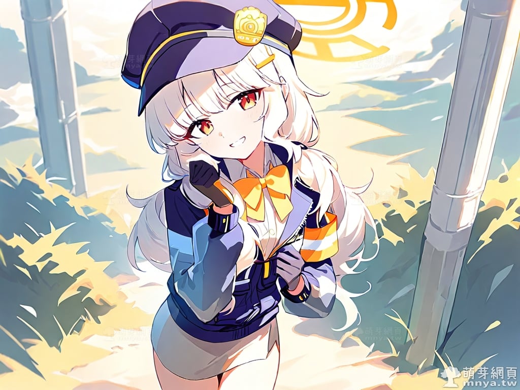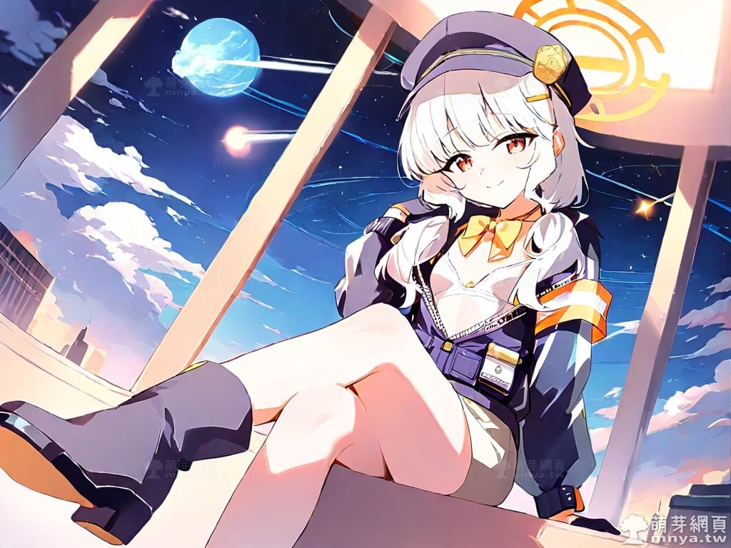 提詞文字:((masterpiece), (soft), (alluring), (high quality):1.3), 1girl, solo, (utsumi aoba:1.2), (blue archive:1.2), __posture__, hat, (halo:1.2), red eyes, twintails, gloves, armband, jacket, low twintails, boots, white hair, long hair, long sleeves, hair ornament, bangs, blue jacket, bow, yellow bow, hairclip, skirt, black footwear, small breasts, breasts, cowboy shot, __looking__, __expression__, __background__. <lora:utsumi_aoba_XL:1>