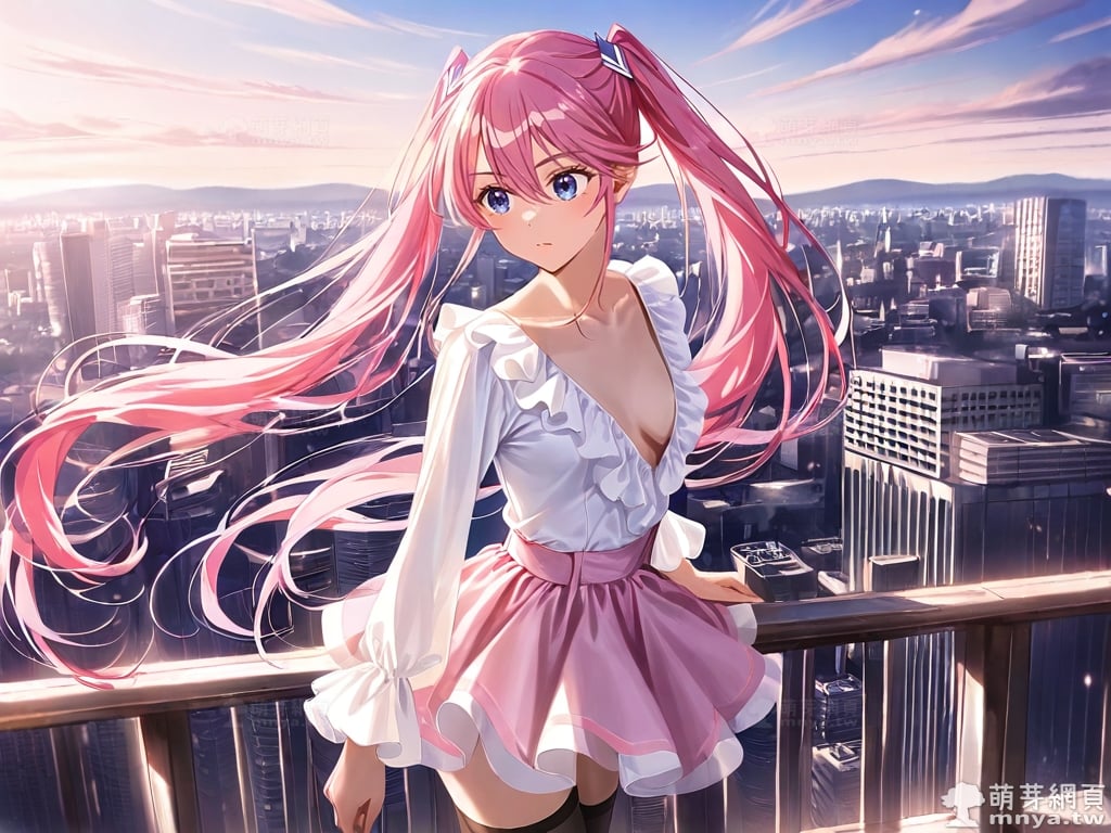 提詞文字:((masterpiece), (soft), (alluring), (high quality):1.3), (photorealistic:0.1), 1girl, solo, (shiunji ouka:1.3), __posture__, upper body, long hair, very long hair, pink hair, hair ornament, twintails, bangs, hair between eyes, blue eyes, collarbone, skirt, pink skirt, shirt, white shirt, frills, black thighhighs, thighhighs, long sleeves, shoes, white footwear, medium breasts, breasts, cowboy shot, __looking__, __expression__, __background__. <lora:shiunji_ouka_XL:1>