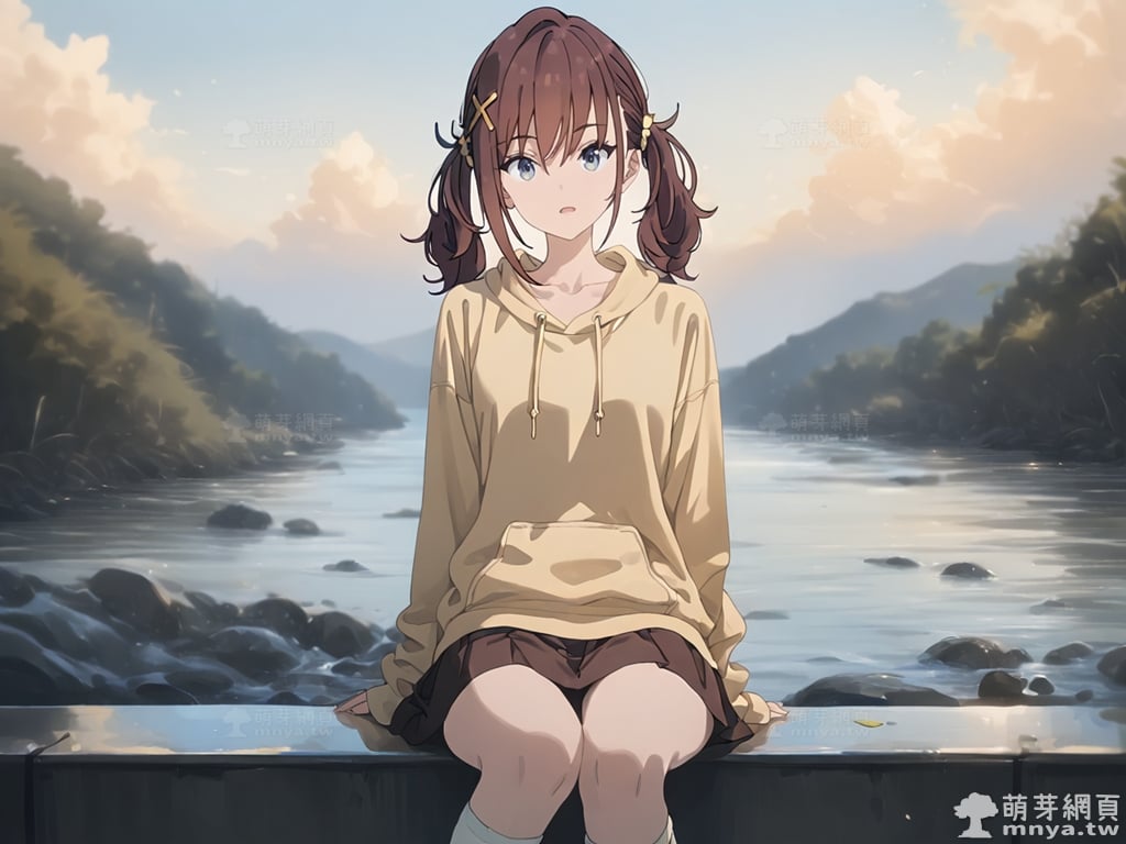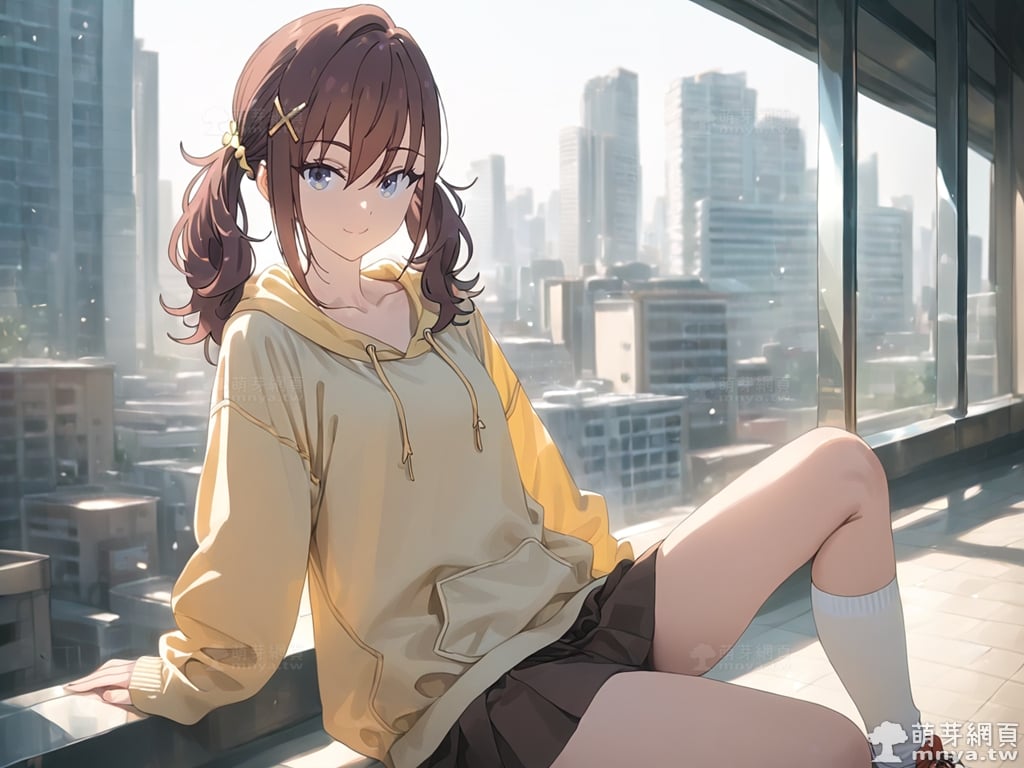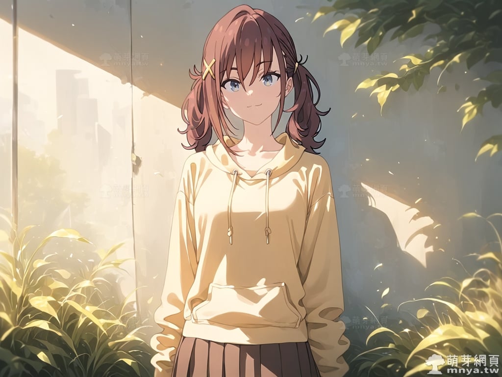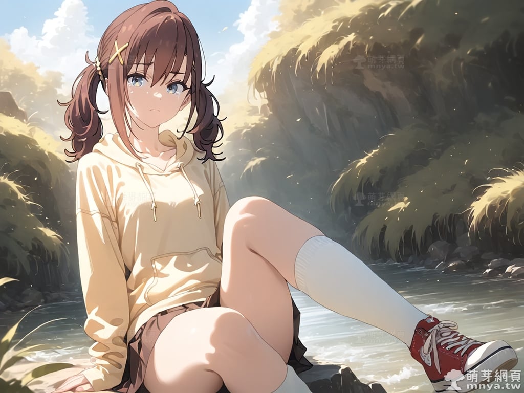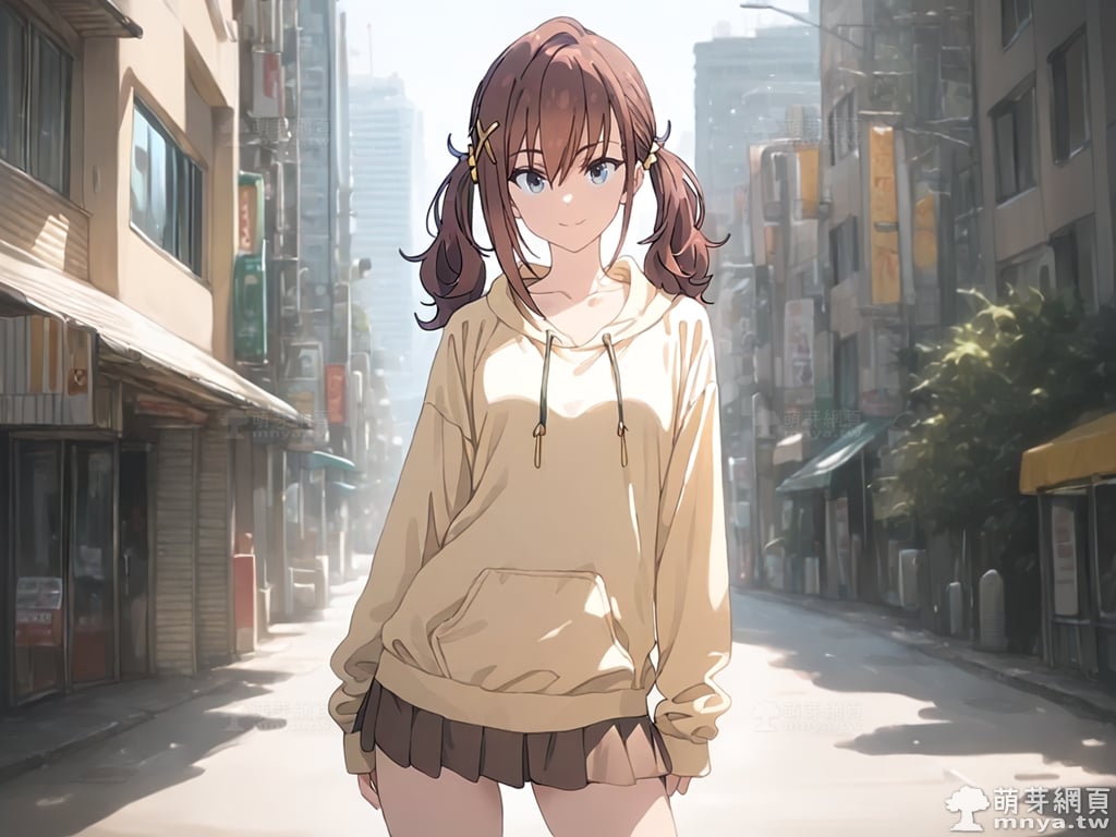 提詞文字:((masterpiece), (high quality), (high score), (great score):1.3), (photorealistic:0.5), 1girl, solo, (furutachi kurea:1.3), __posture__, upper body, long hair, brown hair, twintails, bangs, x hair ornament, hair ornament, hair between eyes, blue eyes, hood, hood down, hoodie, drawstring, yellow hoodie, skirt, pleated skirt, long sleeves, white socks, socks, sleeves past wrists, brown skirt, collarbone, kneehighs, red footwear, sneakers, small breasts, breasts, cowboy shot, __looking__, __expression__, __background__. <lora:furutachi_kurea_XL:1>