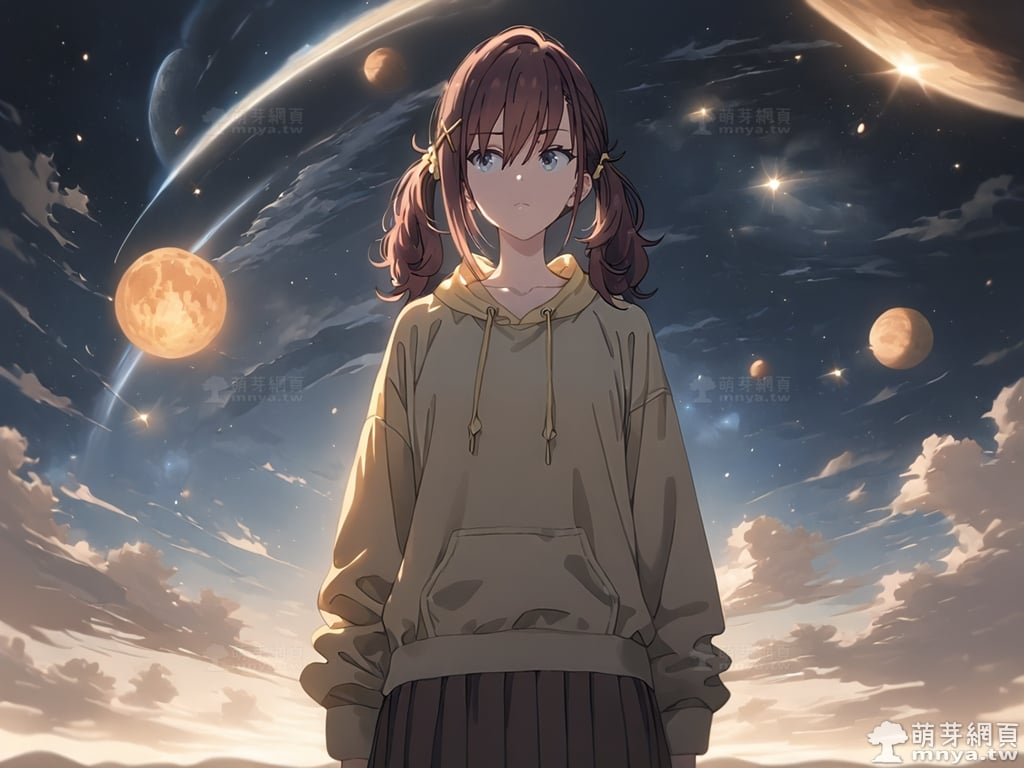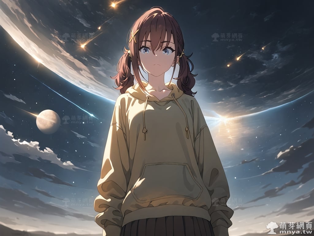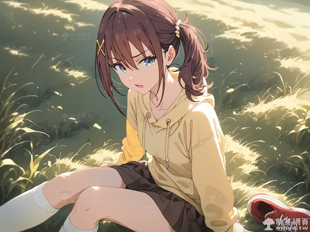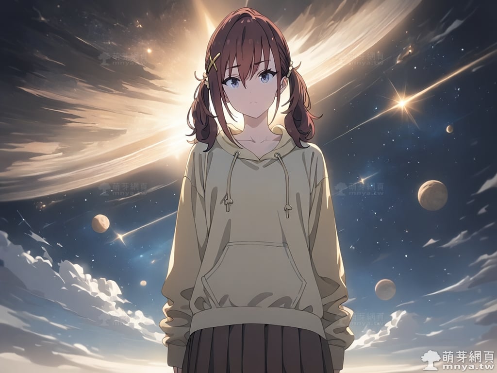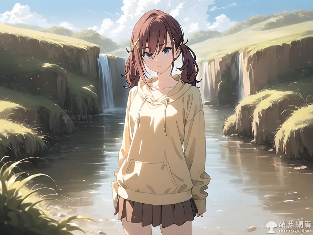 提詞文字:((masterpiece), (high quality), (high score), (great score):1.3), (photorealistic:0.5), 1girl, solo, (furutachi kurea:1.3), __posture__, upper body, long hair, brown hair, twintails, bangs, x hair ornament, hair ornament, hair between eyes, blue eyes, hood, hood down, hoodie, drawstring, yellow hoodie, skirt, pleated skirt, long sleeves, white socks, socks, sleeves past wrists, brown skirt, collarbone, kneehighs, red footwear, sneakers, small breasts, breasts, cowboy shot, __looking__, __expression__, __background__. <lora:furutachi_kurea_XL:1>