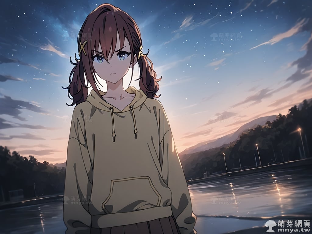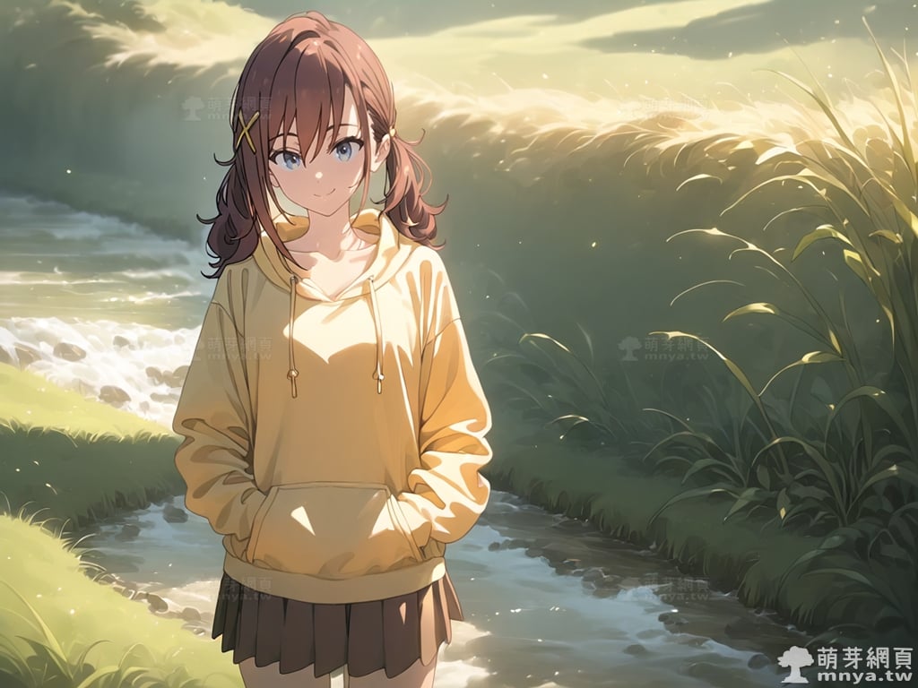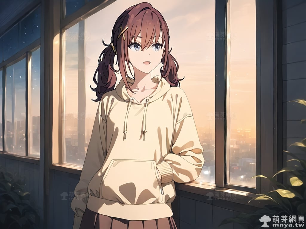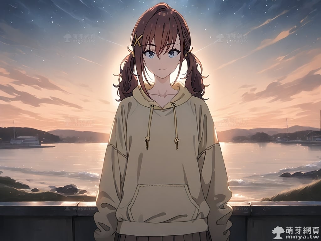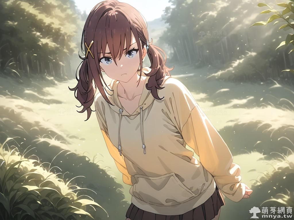 此次的目標是在「歲月流逝飯菜依舊美味」(日々は過ぎれど飯うまし,Food for the Soul)登場的「古館九禮亞」(古舘 くれあ,Furutachi Kurea),生日是 11 月 29 日,星座為射手座,血型為 A 型。她是一位擁有可靠氣質的少女,總是積極協助父母經營家中的食堂,展現出她成熟穩重的一面。雖然年紀不大,卻如大姊般引導著性格自由散漫的社團夥伴們,既有領導力也不失溫暖親切。她的外型也十分可愛,雙馬尾髮型搭配深紅棕色的髮色,額前自然垂下的瀏海讓她看起來親近又有朝氣。右側以黃色交叉髮夾固定著部分髮絲。平時穿著則以淺米色連帽上衣搭配灰黑色百褶裙與長襪,腳踩橘紅色球鞋,展現出休閒而充滿活力的學生風格。使用 SDXL 模型生成,並搭配自行訓練的 SDXL 專用 LoRA 模型,效果很不錯。總共產生 100 張,挑掉不合理跟瑕疵較多的有 30 張如下提供大家參考。