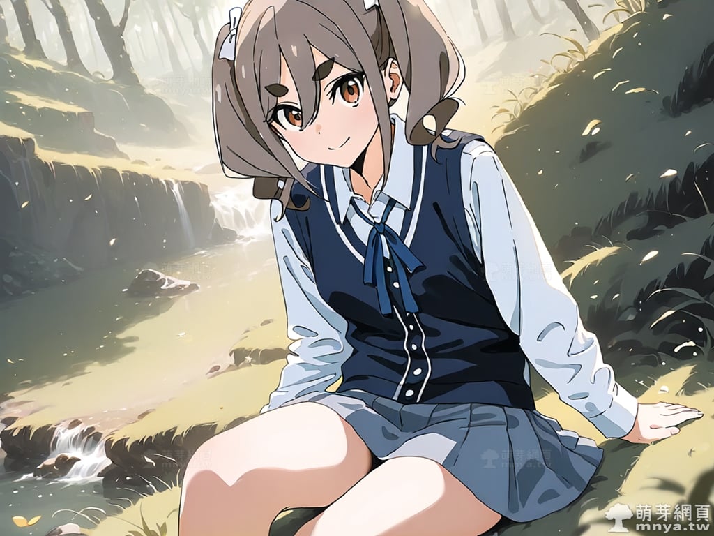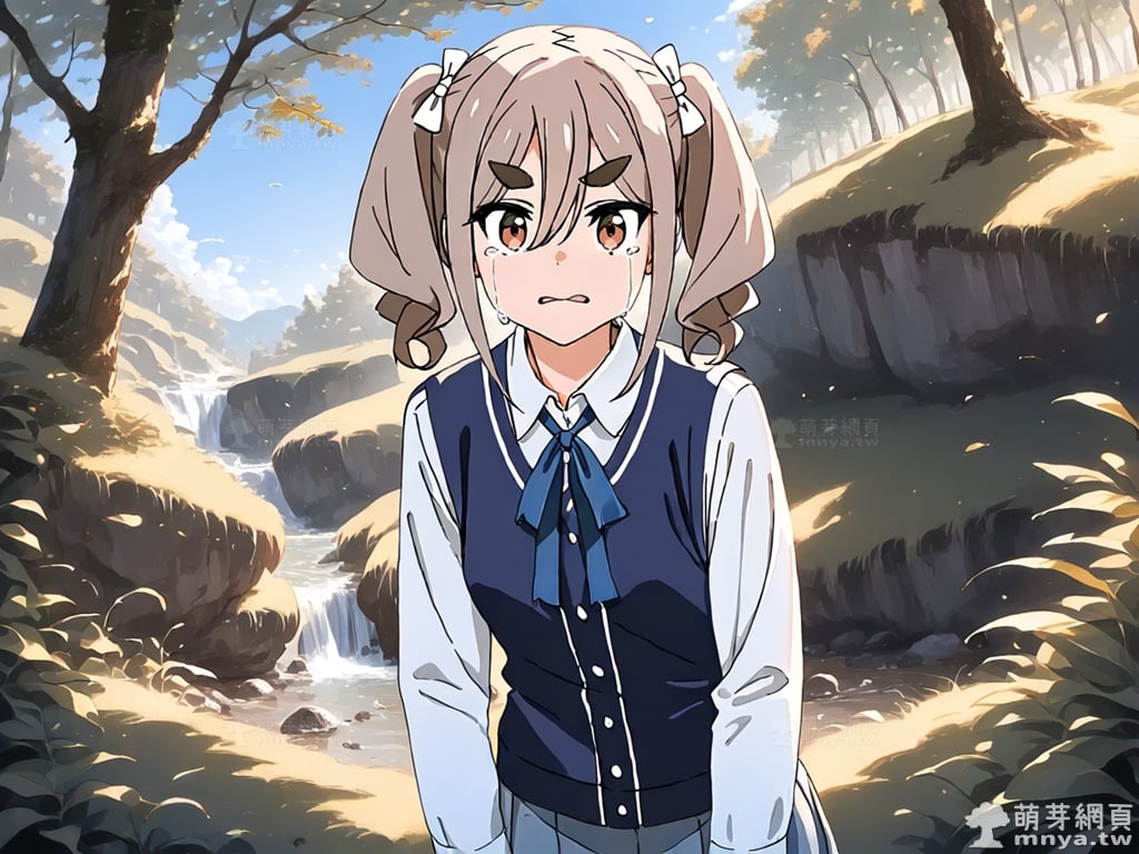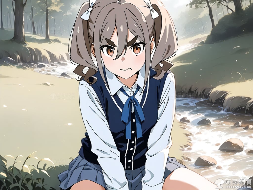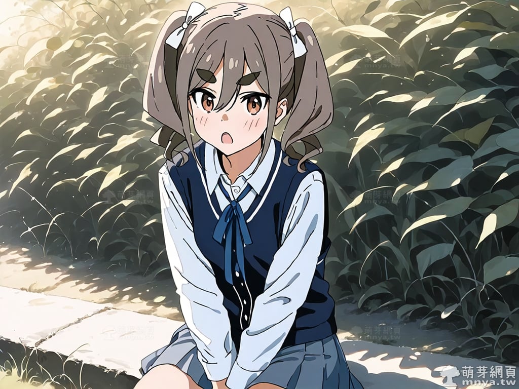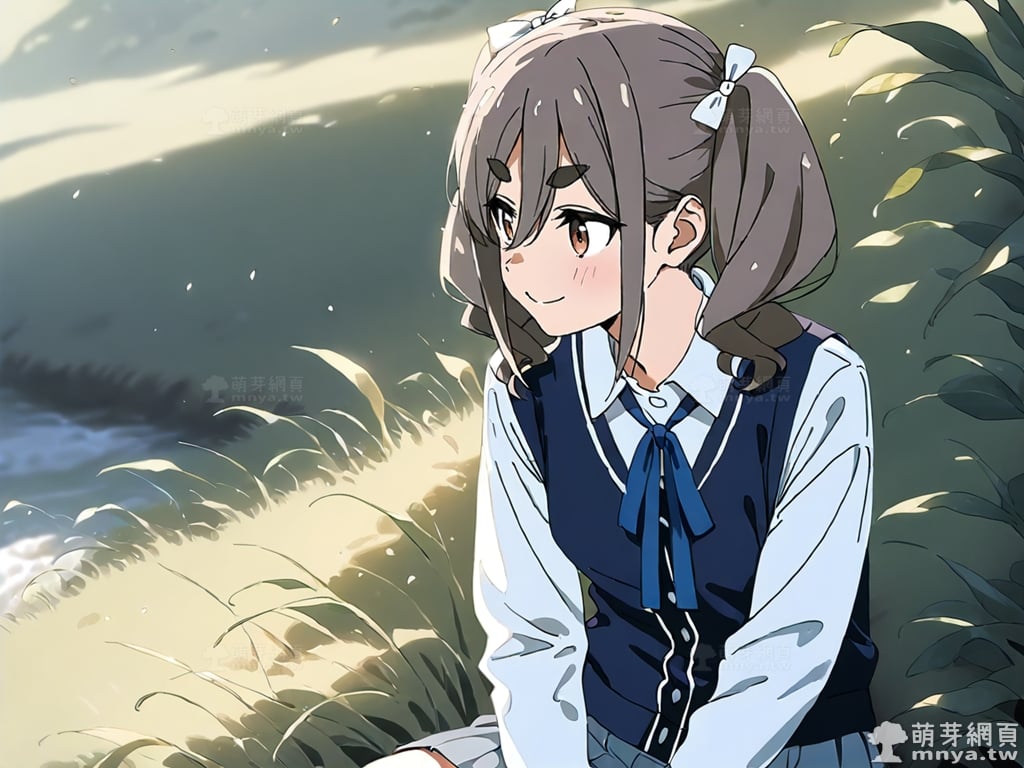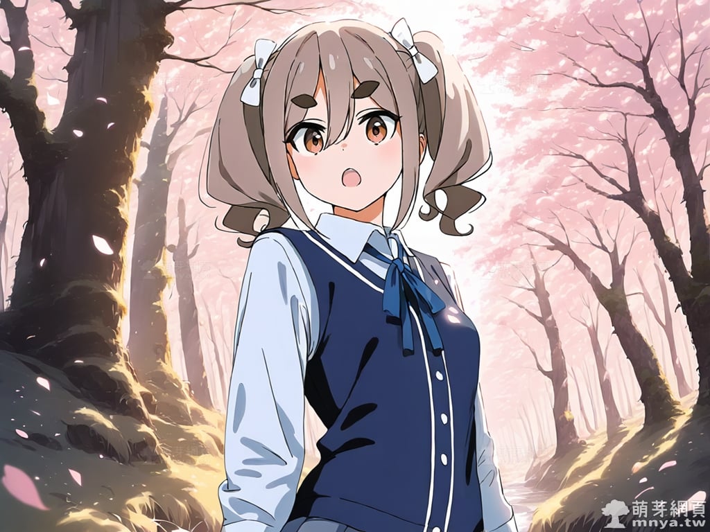 提詞文字:((masterpiece), (high quality), (high score), (great score):1.2), (photorealistic:0.5), 1girl, solo, (kiriyama an:1.3), __posture__, upper body, brown hair, twintails, bangs, hair bow, white bow, bow, hair between eyes, brown eyes, thick eyebrows, ribbon, blue ribbon, neck ribbon, short eyebrows, skirt, white shirt, pleated skirt, shirt, collared shirt, grey skirt, long sleeves, dress shirt, school uniform, blue skirt, sweater vest, black vest, small breasts, breasts, cowboy shot, __looking__, __expression__, __background__. <lora:kiriyama_an_XL:1>