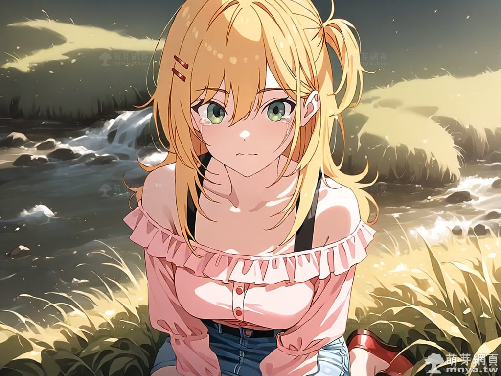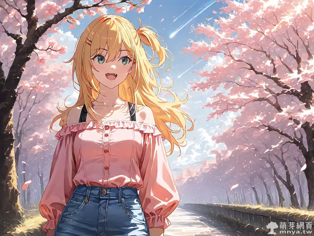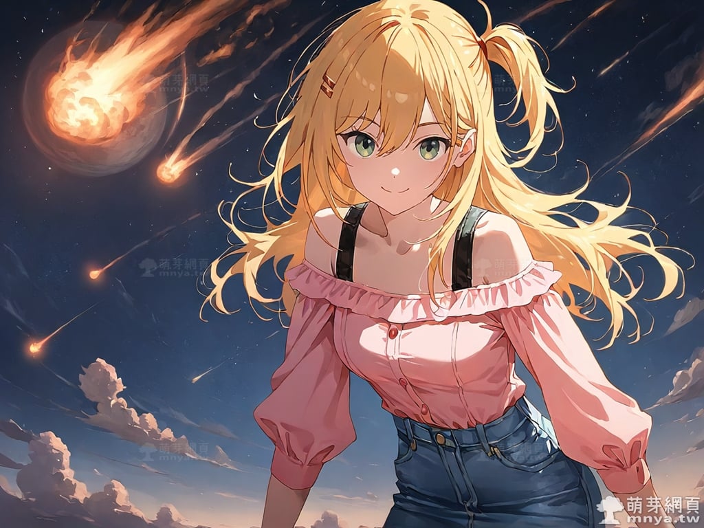 此次的目標是在「歲月流逝飯菜依舊美味」(日々は過ぎれど飯うまし,Food for the Soul)登場的「星奈奈」(星 なな,Hoshi Nana),生日是 6 月 17 日,星座為雙子座,血型為 A 型。她與躑躅是高中同學,性格內向害羞,不過一旦熟絡後就會展現出活潑開朗的一面。原本希望自己成立解謎社團,但由於個性緣故未能成功,最終轉而加入了飲食文化研究社。從她的外型來看,他擁有一頭柔順的金色長髮,瀏海自然分散,右側用紅色髮夾固定住部分髮絲,左後方則以髮圈綁成俏皮的小髮髻,展現出些許少女的可愛感。她的雙眼呈現清澈的碧綠色,散發出溫和而靦腆的氣質。服裝上,她平常穿著一件帶有荷葉邊的粉紅色露肩上衣,搭配高腰牛仔短裙和紅色平底鞋,整體造型既清新又帶點時尚感。使用 SDXL 模型生成,並搭配自行訓練的 SDXL 專用 LoRA 模型,效果很不錯。總共產生 100 張,挑掉不合理跟瑕疵較多的有 8 張如下提供大家參考。