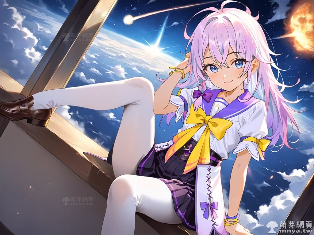 提詞文字:(masterpiece), (high quality), (high score), (great score), (photorealistic:0.5), 1girl, solo, (niberune \(i left my a-rank party\)), __posture__, upper body, loli, long hair, pink hair, multicolored hair, ahoge, crossed bangs, bangs, single braid, side braid, hair bow, hair between eyes, blue eyes, bow, skirt, school uniform, purple sailor collar, sailor collar, yellow bow, serafuku, pleated skirt, short sleeves, bracelet, purple bow, white pantyhose, pantyhose, brown footwear, small breasts, breasts, cowboy shot, __looking__, __expression__, __background__. <lora:niberune_(i_left_my_a-rank_party)_XL:1>