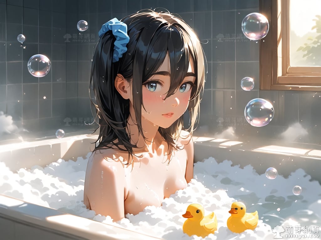 提詞文字:((masterpiece), (soft), (alluring), (high quality):1.3), (photorealistic:0.5), 1girl, solo, solo focus, (amamiya satsuki:1.3), medium hair, black hair, hair scrunchie, blue scrunchie, scrunchie, one side up, bangs, hair between eyes, blue eyes, thick eyebrows, small breasts, breasts, __bathe__. <lora:amamiya_satsuki_XL:1>