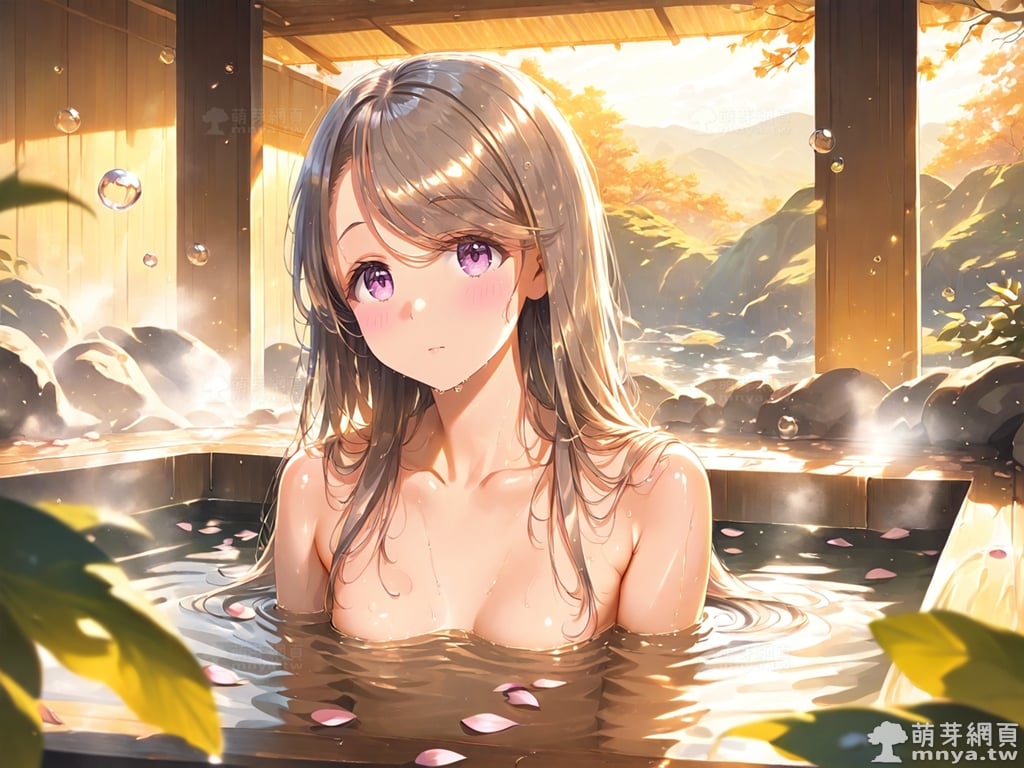 提詞文字:((masterpiece), (soft), (alluring), (high quality):1.2), (photorealistic:0.1), 1girl, solo, solo focus, (shikishima sakurako:1.3), long hair, very long hair, grey hair, brown hair, swept bangs, bangs, purple eyes, small breasts, breasts, __bathe__. <lora:shikishima_sakurako_XL:1>