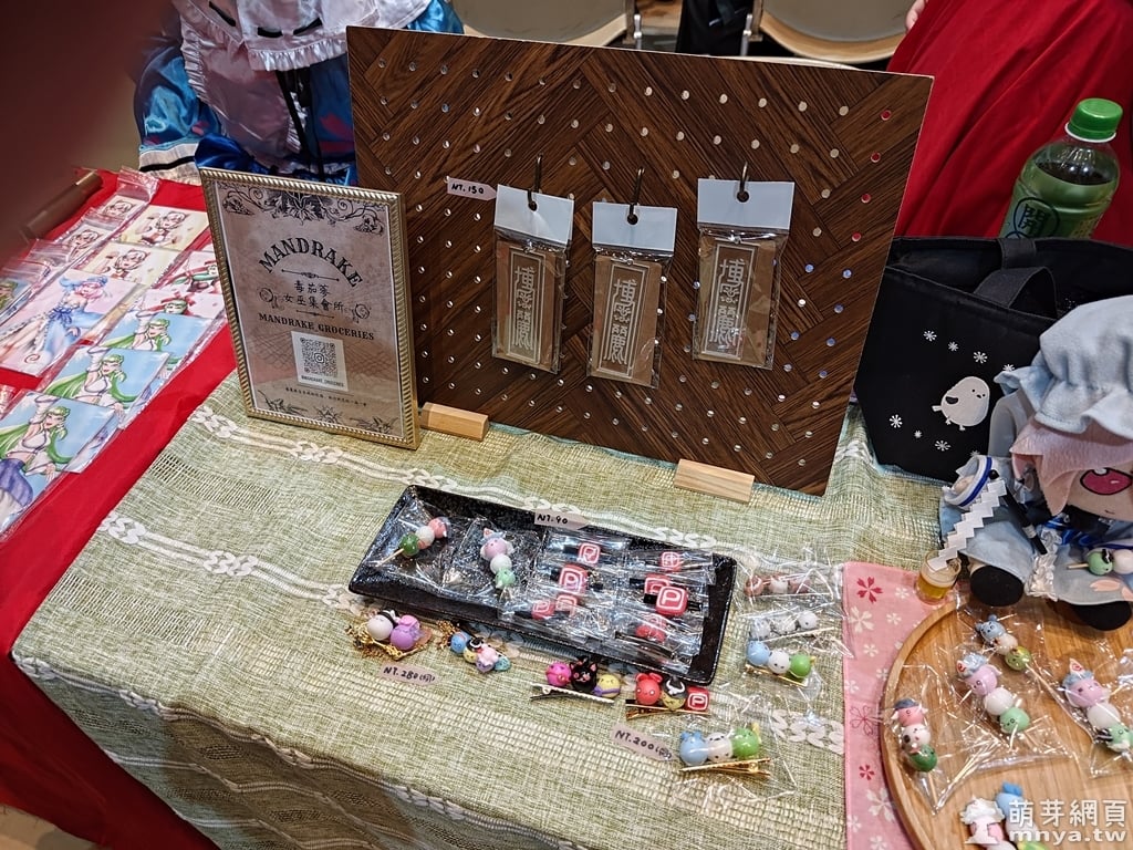 ▲ 白玉樓的餐桌風景攤位展示著超可愛的 Fumo 角色串珠飾品,顏色繽紛!
