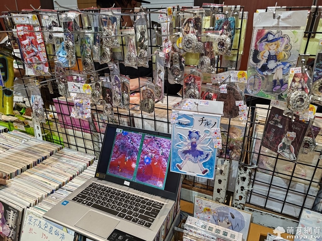 ▲ 森蘿御界有滿滿的吊飾與同人商品展示在網架上,還有筆電播放展示內容。