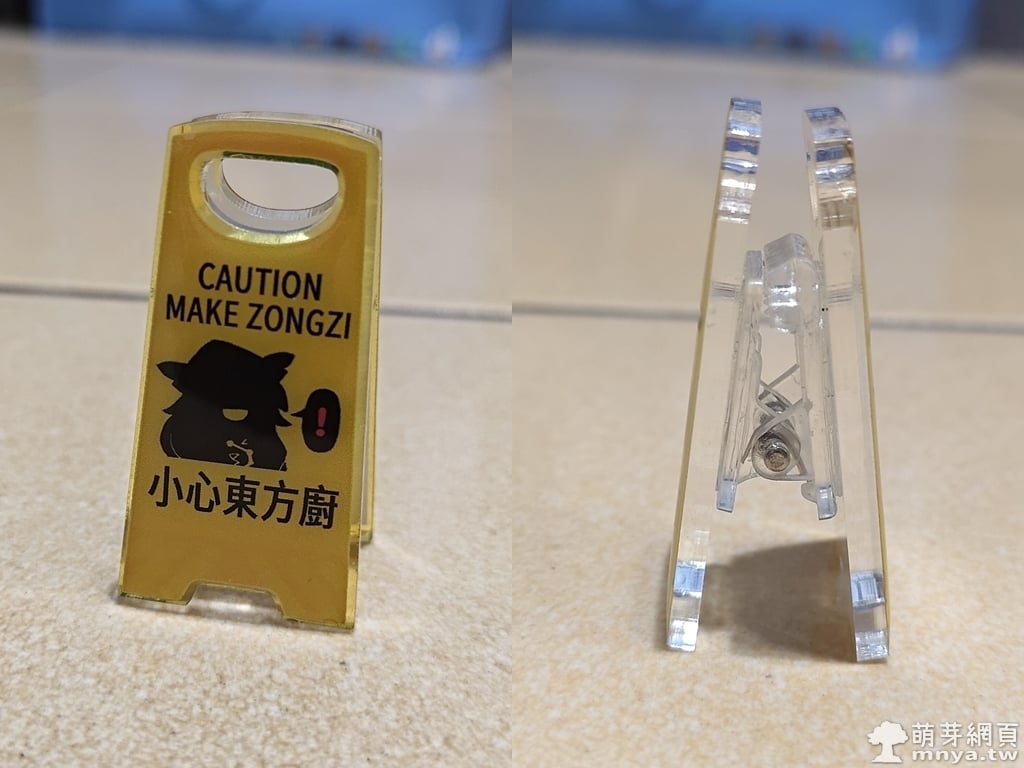 ▲ AJ4N3 販售的壓克力「注意出沒夾」,印上「小心東方廚」的幽默警語,單個新台幣 200 元。