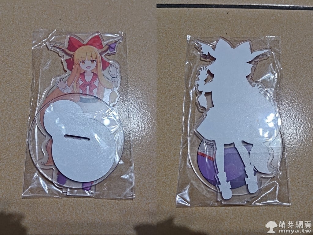 ▲ 幻想鄉公所買的角色壓克力立牌,新台幣 200 元,分別是豫母都日狹美(紫髮)與日白殘無(黑髮)。