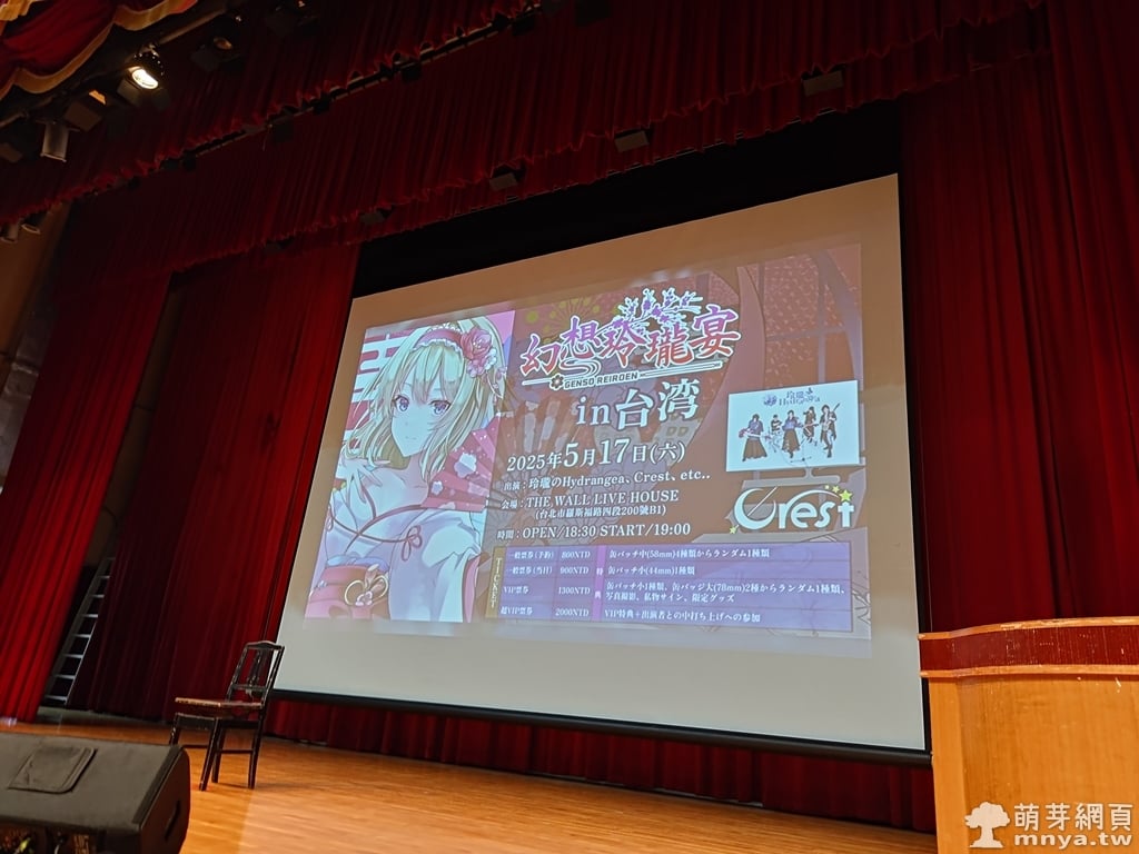 ▲ 主舞台大幕拉開,投影播放幻想玲瓏宴in台灣的資訊,這個活動在當天晚上,由東方同人音樂社團玲瓏のHydrangea、Crest 等出演。