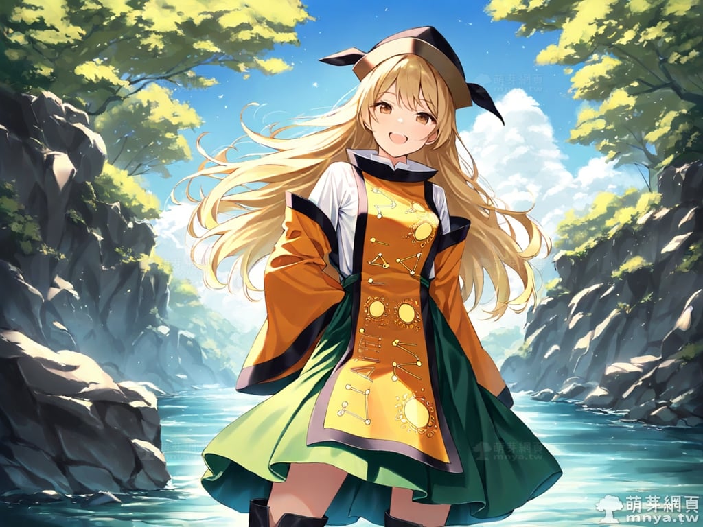 東方Project角色 AI 圖畫第一百零六彈,此次的目標是「東方天空璋~ Hidden Star in Four Seasons.」初次登場的「摩多羅隱岐奈」(摩多羅 隠岐奈,Matara Okina),潛藏於萬物背上的秘神。她表面上有多重身份,包括地母神、能樂之神、星宿之神、養蠶之神、障礙之神、被差別民之神等,但其真正的身份無人知曉。她是創建幻想鄉的賢者之一,種族為秘神,擁有在任何事物的背上做出門扉的能力,活動範圍主要在幻想鄉和後戶之國,並隸屬於後戶之國。摩多羅隱岐奈擁有一頭亮麗的黃色長髮。她的瞳色也與髮色相呼應,是迷人的黃色。她的服裝似乎是狩衣樣式,頭戴幞頭,整體造型帶有古典神祕的氣息。使用 SDXL 模型直接生成,效果很不錯。總共產生 100 張,挑掉不合理跟瑕疵較多的有 11 張如下提供大家參考。