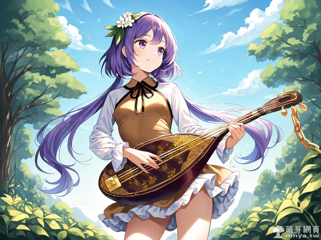東方Project角色 AI 圖畫第一百一十九彈,此次的目標是「東方輝針城~ Double Dealing Character.」初次登場的「九十九弁弁」(九十九 弁々,Tsukumo Benben),付喪神,同時也是九十九八橋的姐姐。雖然她們以姐妹相稱,但並沒有血緣關係,僅是因為在同一時期成為付喪神。她曾夢想讓道具征服世界,創造一個「下克上」的理想鄉,在失敗後從堀川雷鼓那裡獲得了避免消失的方法。在普莉茲姆利巴樂團解散期間,她與妹妹組成了弦樂二重唱團體「女子二樂坊」,並獲得了頗高的人氣。作為一名付喪神,她擁有能夠自己發出聲音進行演奏的能力,主要活動範圍在幻想鄉。從外型來看,她擁有一頭亮麗的紫髮,瞳色同樣為紫色。她的髮型為下雙馬尾,並佩戴著花型髮飾,身著連衣裙,赤足,並時常與琵琶和鎖鍊一同出現。使用 SDXL 模型直接生成,效果很不錯。總共產生 100 張,挑掉不合理跟瑕疵較多的有 7 張如下提供大家參考。