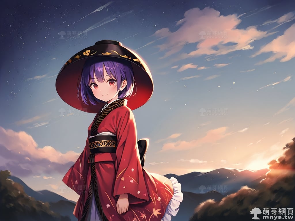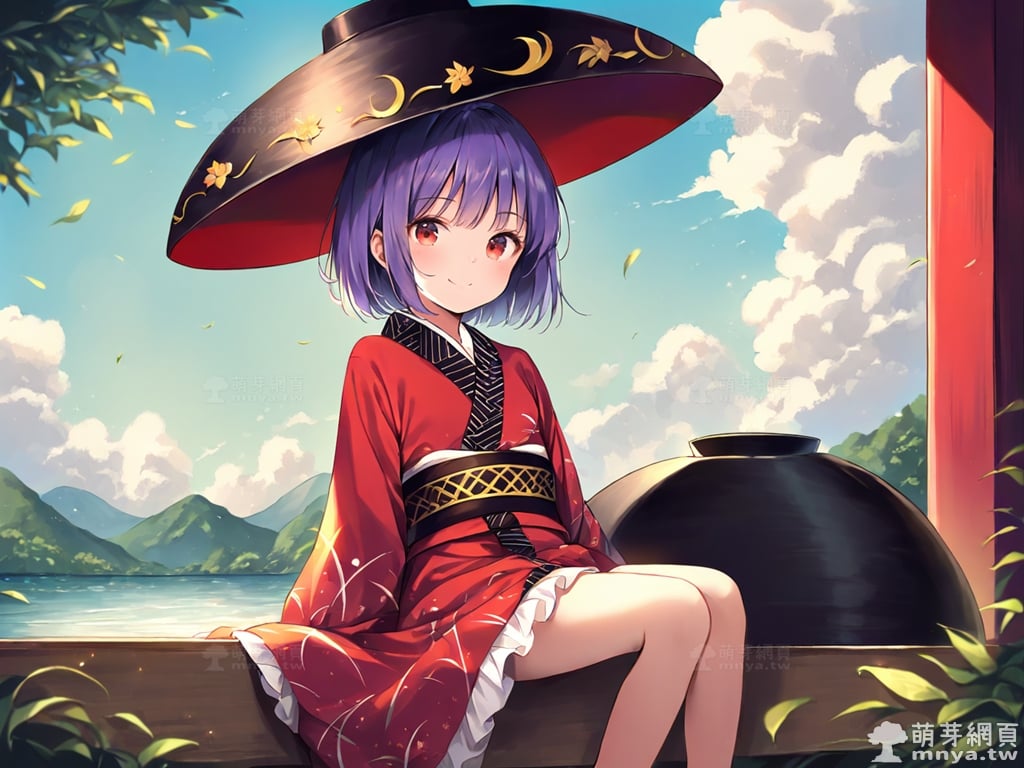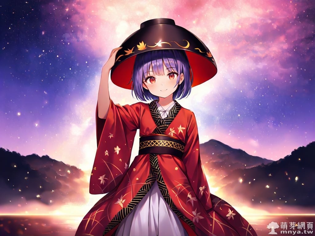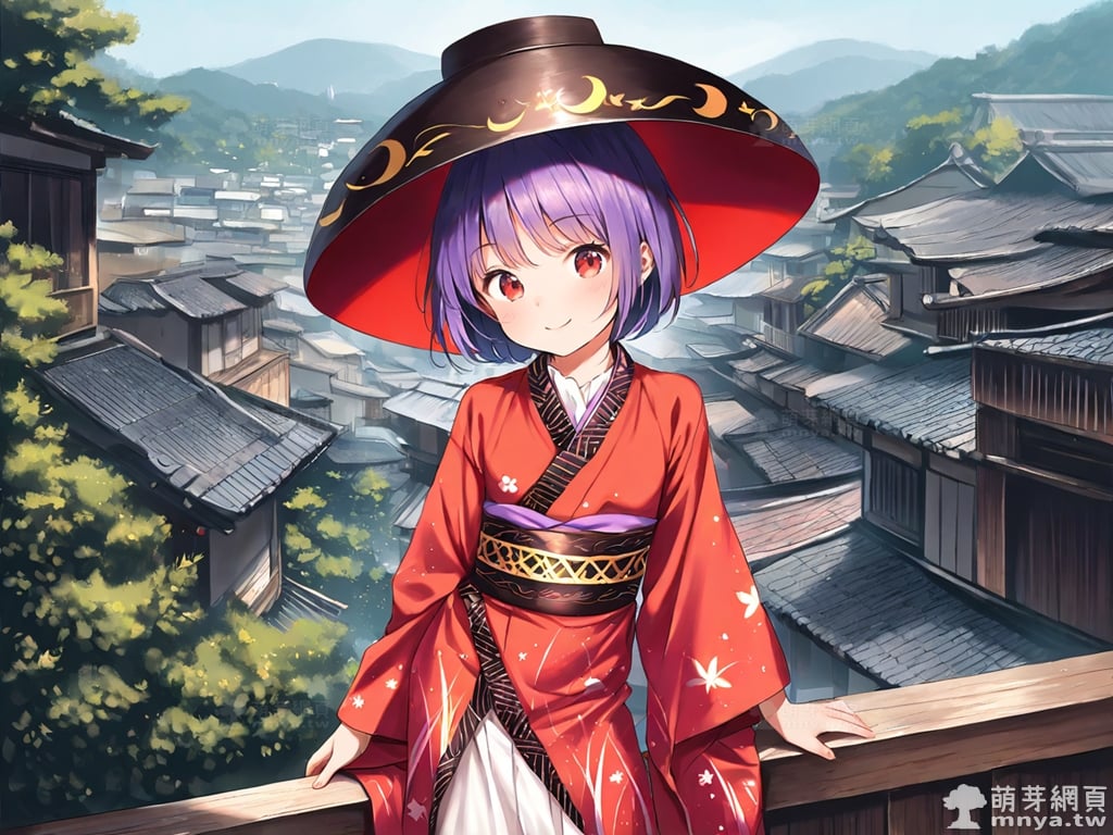 提詞文字:(masterpiece), (high quality), (high score), (great score), (year 2020), (kawaii), (loli), (photorealistic:0.1), 1girl, solo, (sukuna shinmyoumaru), touhou, __posture__, short hair, purple hair, red eyes, bowl, bowl hat, mini person, minigirl, hat, japanese clothes, patterned clothing, kimono, red kimono, barefoot, small breasts, breasts, cowboy shot, __looking__, __expression__, __background__.