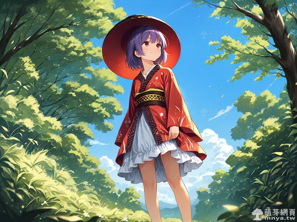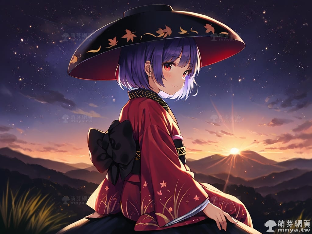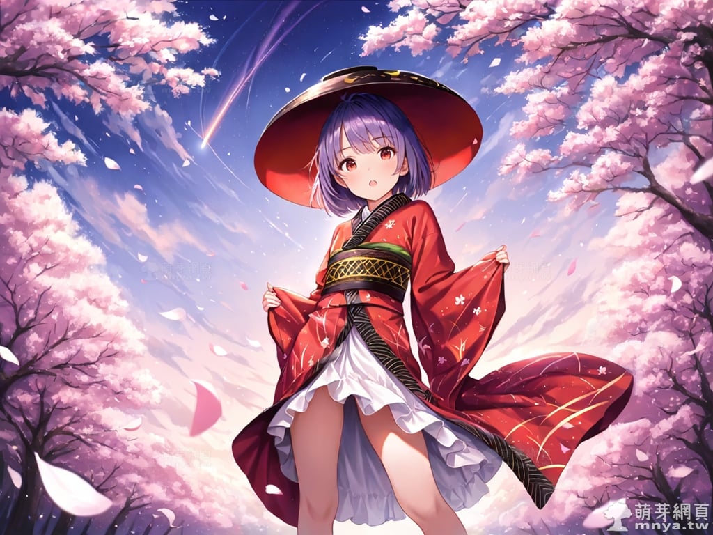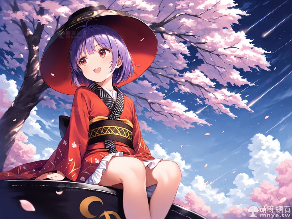 提詞文字:(masterpiece), (high quality), (high score), (great score), (year 2020), (kawaii), (loli), (photorealistic:0.1), 1girl, solo, (sukuna shinmyoumaru), touhou, __posture__, short hair, purple hair, red eyes, bowl, bowl hat, mini person, minigirl, hat, japanese clothes, patterned clothing, kimono, red kimono, barefoot, small breasts, breasts, cowboy shot, __looking__, __expression__, __background__.