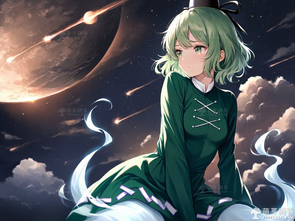 東方Project角色 AI 圖畫第一百二十九彈,此次的目標是「東方神靈廟~ Ten Desires.」初次登場的「蘇我屠自古」(蘇我 屠自古,Soga no Tojiko),古代豪族蘇我氏一族的亡靈,與物部布都一同侍奉豐聰耳神子。她曾因上了布都的當而復活失敗,失去了肉體成為亡靈,但現在對此已毫不在意。作為一個亡靈,她擁有名為「能夠引發雷電程度的能力」,能輕易地降下落雷。她的出身地為日本,目前主要在幻想鄉的神靈廟活動。在外型上,她擁有一頭翠綠色的短髮,並佩戴著一頂獨特的黑色冠帽。她的瞳色也與髮色相呼應,是清澈的綠色。她身穿一襲優雅的綠色連衣裙,裙襬寬大。使用 SDXL 模型直接生成,效果很不錯。總共產生 100 張,挑掉不合理跟瑕疵較多的有 7 張如下提供大家參考。