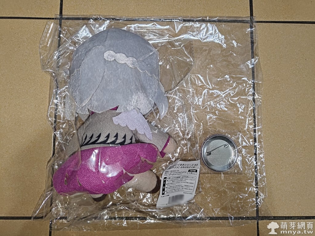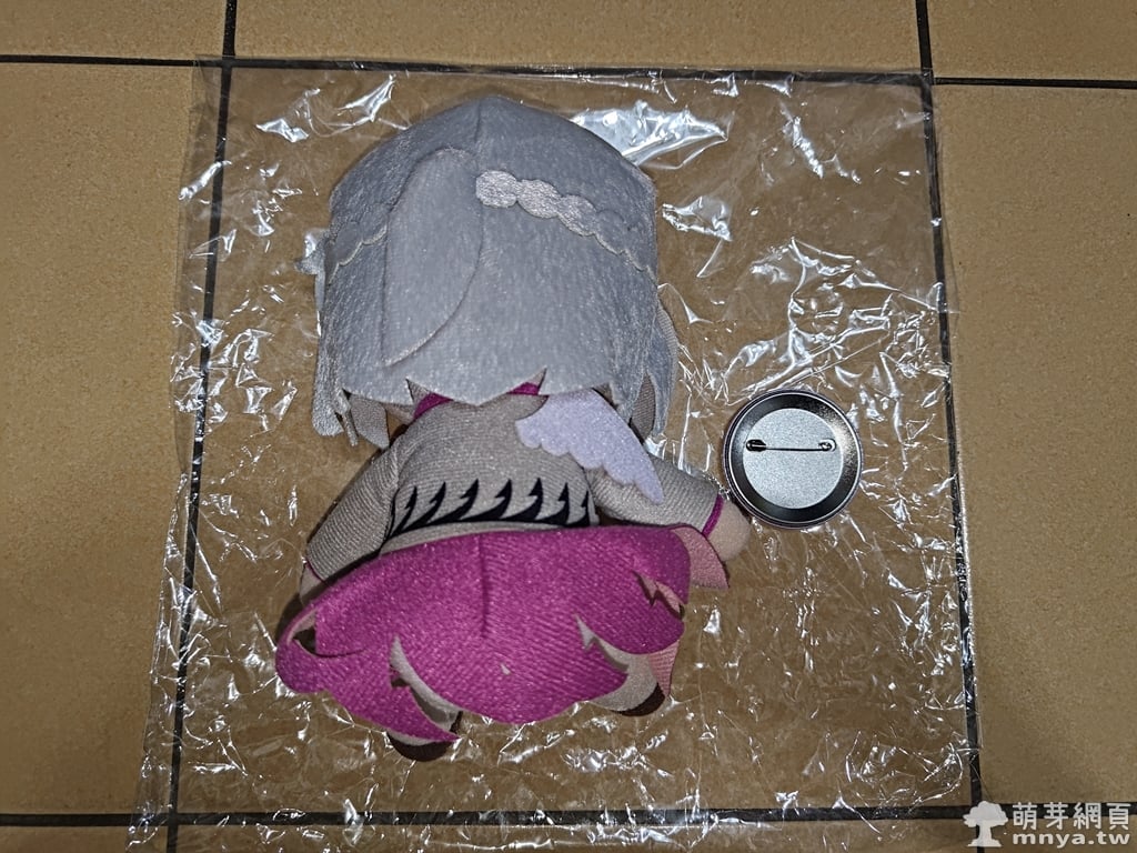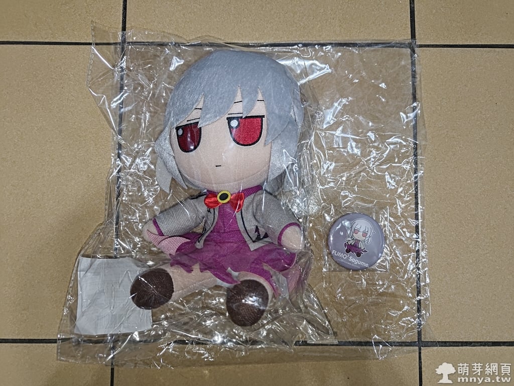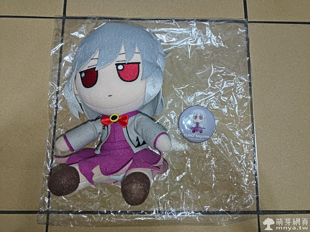 ▲ 布偶本體以及隨附的特典徽章,皆以透明塑膠袋包裝,保持新品狀態。稀神サグメ的紅色雙眼和標誌性的銀灰色短髮,初見就很有存在感,細節也十分講究。