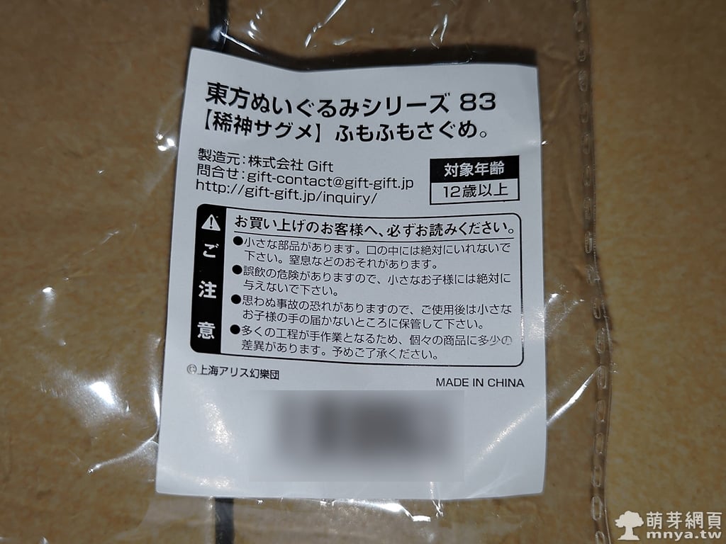 本次要開箱的是《東方Project》系列的布偶──東方ぬいぐるみシリーズ 83【稀神サグメ】ふもふもさぐめ。