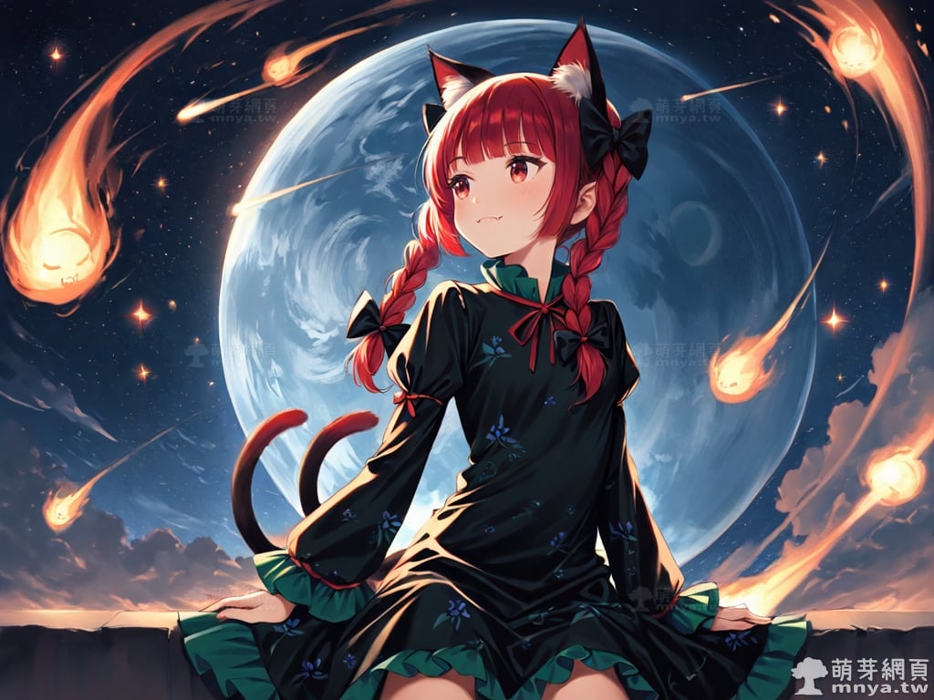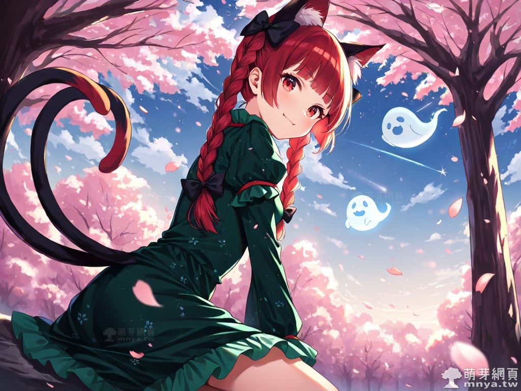東方Project角色 AI 圖畫第一百四十四彈,此次的目標是「東方地靈殿~ Subterranean Animism.」初次登場的「火焰貓燐」(火焔猫 燐,Kaenbyou Rin),棲息於舊地獄的火車妖怪,同時也是古明地覺的寵物。她擁有帶走屍體的能力,儘管會做出在葬禮中奪走屍體這樣不吉的行徑,但她對活著的人類不感興趣,也不會主動殺人。憑藉著能言善辯和與屍體、靈魂對話的能力,她負責管理灼熱地獄遺蹟的怨靈,並在覺辦案時擔任偵探助手的角色。火焰貓燐與靈烏路空是關係要好的朋友,她們在很久以前被覺收養時便已成為好友。她的符卡名多與怨靈有關。她的外型十分引人注目,擁有一頭紅色的雙馬尾麻花辮,搭配著大蝴蝶結和絲帶裝飾,充滿元氣且單純可愛。她的瞳色亦為紅色,閃爍著靈動的光芒。作為一位貓娘,她有著顯著的貓耳和貓尾,更增添了其獨特的魅力。她常穿著瑪麗珍鞋,活動範圍主要在舊地獄,並隸屬於地靈殿。使用 SDXL 模型直接生成,效果很不錯。總共產生 100 張,挑掉不合理跟瑕疵較多的有 7 張如下提供大家參考。