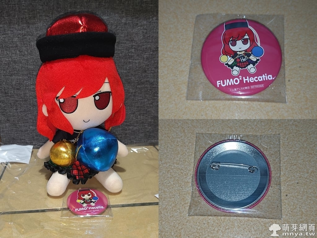 ▲ 布偶和限定徽章的組合照,徽章正面是可愛 Q 版插圖,背面為一般別針設計,拿來點綴包包或展示都很適合。