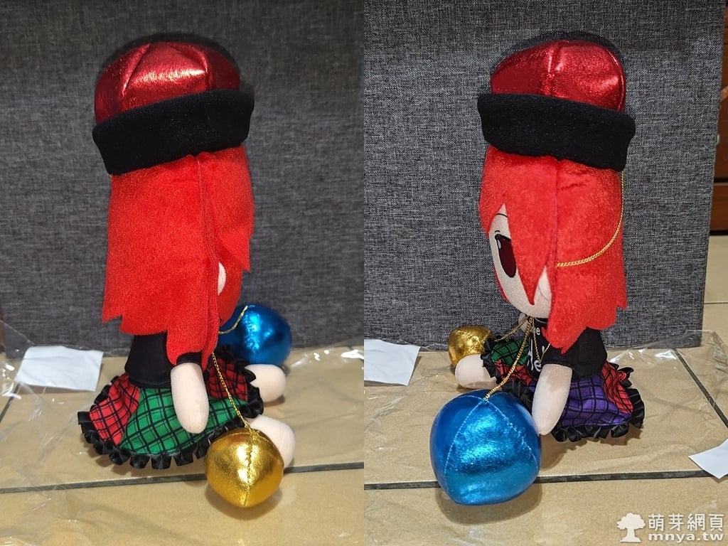 ▲ 拆袋後的布偶本體正反面實拍照,帽子、裙子的顏色以及「Welcome ♥ Hell」的 T 恤都一一還原,三色球也很搶眼。