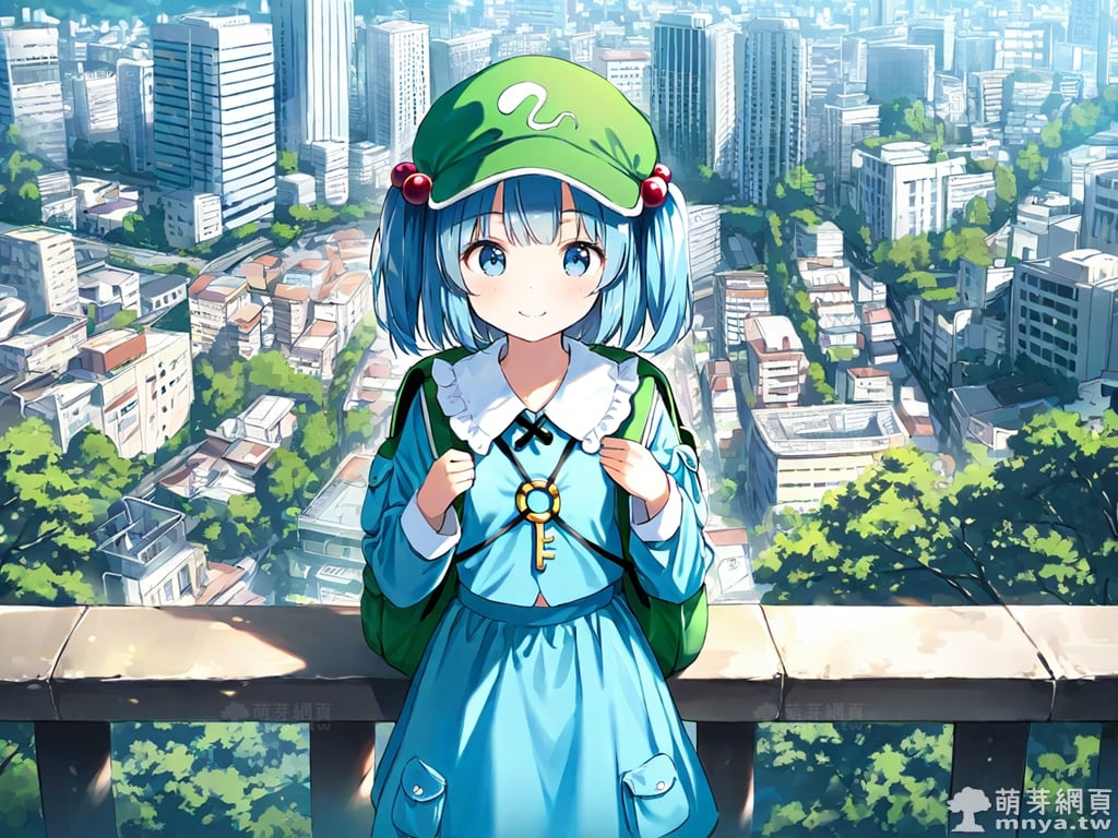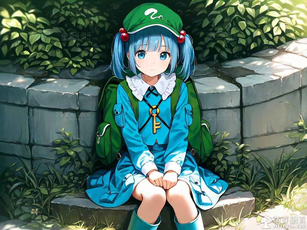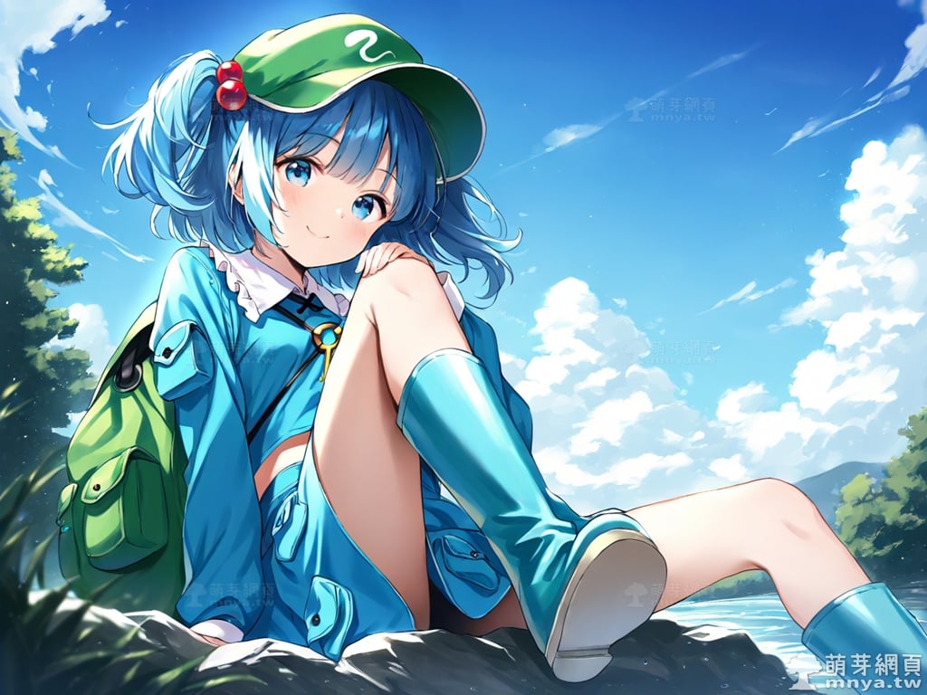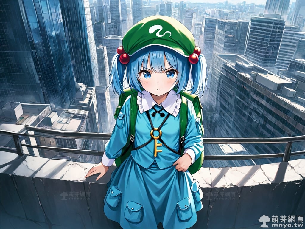 東方Project角色 AI 圖畫第一百五十一彈,此次的目標是「東方風神錄~ Mountain of Faith.」初次登場的「河城荷取」(河城 にとり,Kawashiro Nitori),妖怪之山的全能水利工程師,同時也是河童的首領。她擅長機械製造和經商,更是特大機器人非想天則和機械水怪尼西號的製造者。她有些貪圖利益,不會輕易放過任何賺錢的機會,符卡和彈幕也多以水為主題。她擁有操縱水的能力。她的活動範圍主要在妖怪之山,如玄武之澤等地。從外型上看,她擁有一頭清新的藍色頭髮,紮著可愛的雙馬尾,搭配一頂翠綠色的鴨舌帽。她的瞳色也是深邃的藍色,與髮色相呼應,眼神中透露出好奇與機靈。她身穿一件水藍色的連身裙,領口有著精緻的白色荷葉邊,胸前掛著一個金色的鑰匙墜飾。肩上背著一個綠色的背包,腳上則穿著藍色的靴子。使用 SDXL 模型直接生成,效果很不錯。總共產生 200 張,挑掉不合理跟瑕疵較多的有 12 張如下提供大家參考。