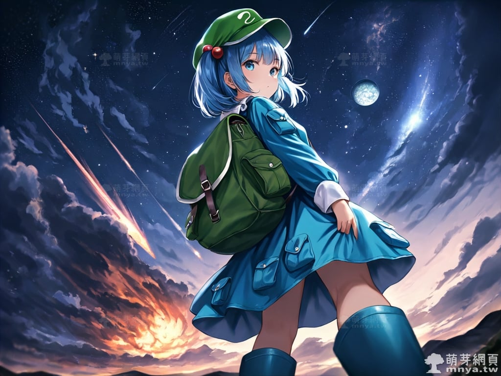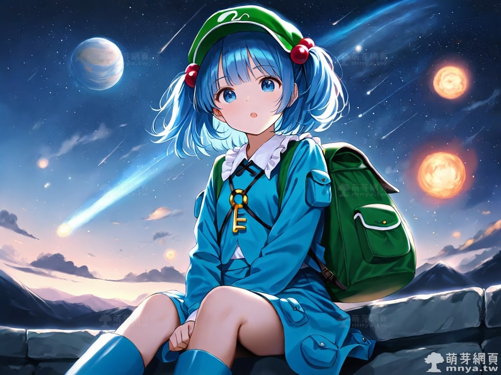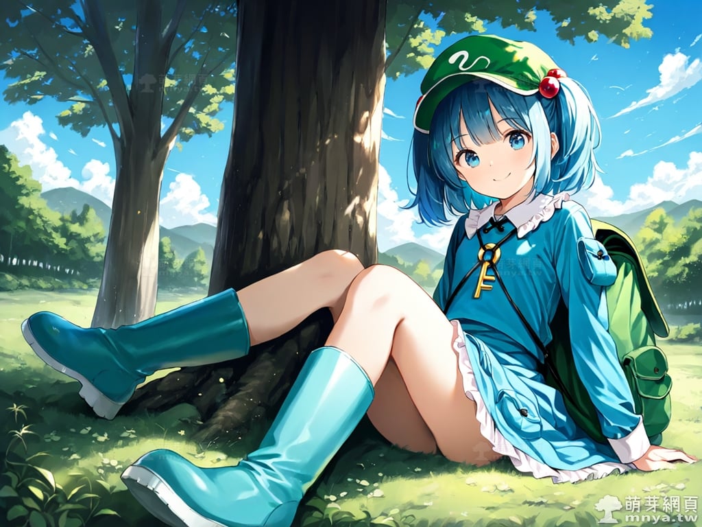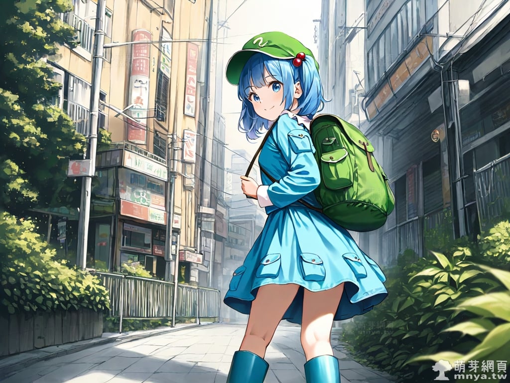 東方Project角色 AI 圖畫第一百五十一彈,此次的目標是「東方風神錄~ Mountain of Faith.」初次登場的「河城荷取」(河城 にとり,Kawashiro Nitori),妖怪之山的全能水利工程師,同時也是河童的首領。她擅長機械製造和經商,更是特大機器人非想天則和機械水怪尼西號的製造者。她有些貪圖利益,不會輕易放過任何賺錢的機會,符卡和彈幕也多以水為主題。她擁有操縱水的能力。她的活動範圍主要在妖怪之山,如玄武之澤等地。從外型上看,她擁有一頭清新的藍色頭髮,紮著可愛的雙馬尾,搭配一頂翠綠色的鴨舌帽。她的瞳色也是深邃的藍色,與髮色相呼應,眼神中透露出好奇與機靈。她身穿一件水藍色的連身裙,領口有著精緻的白色荷葉邊,胸前掛著一個金色的鑰匙墜飾。肩上背著一個綠色的背包,腳上則穿著藍色的靴子。使用 SDXL 模型直接生成,效果很不錯。總共產生 200 張,挑掉不合理跟瑕疵較多的有 12 張如下提供大家參考。