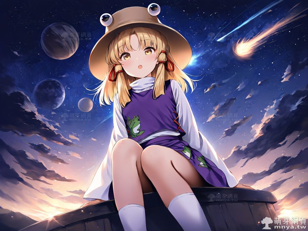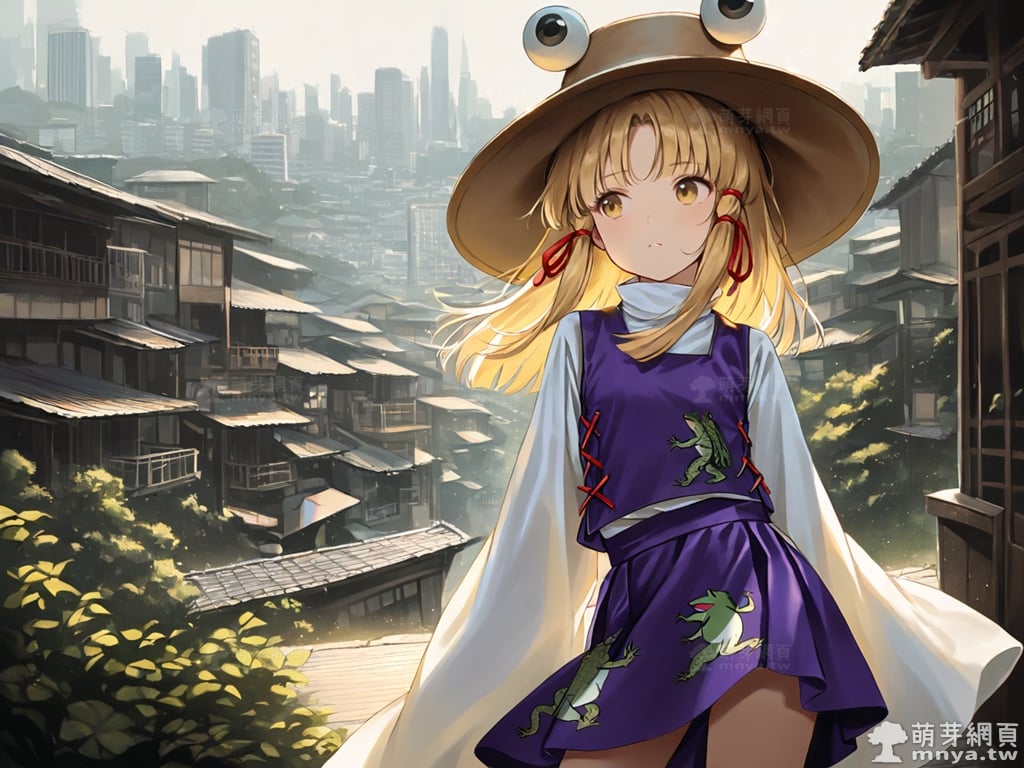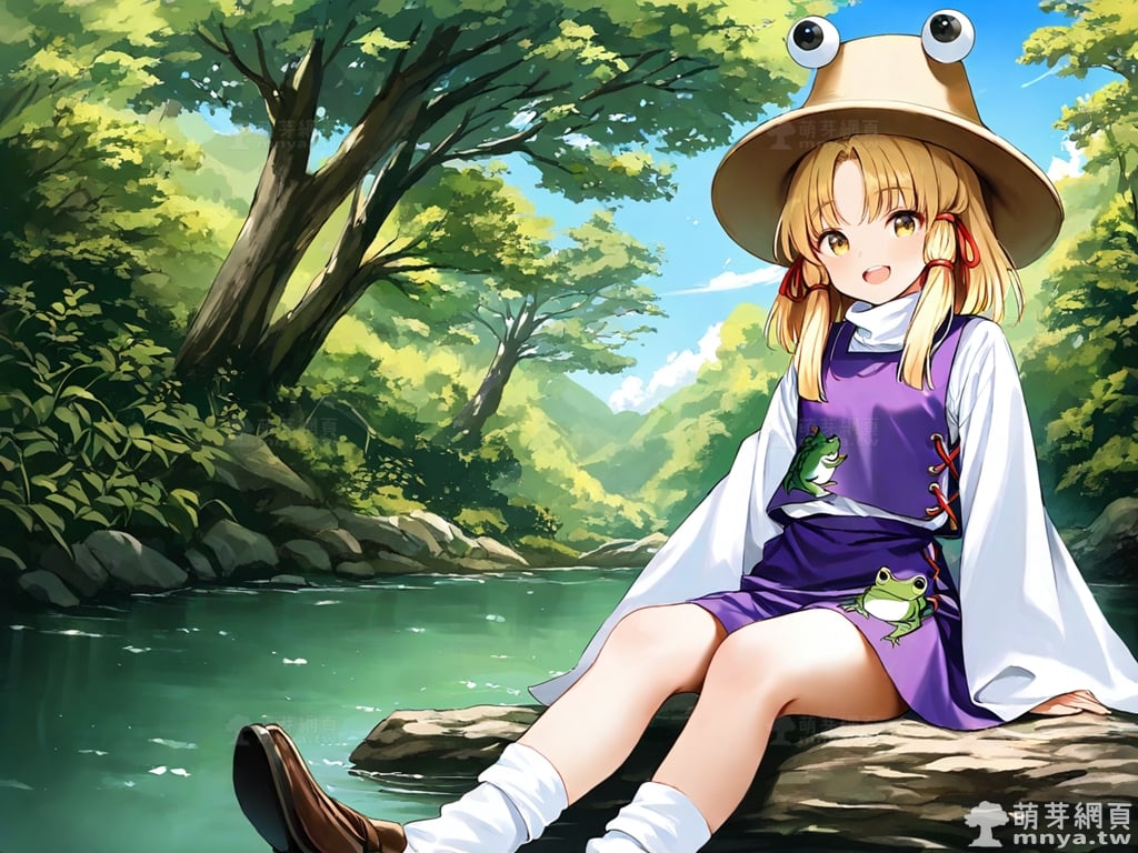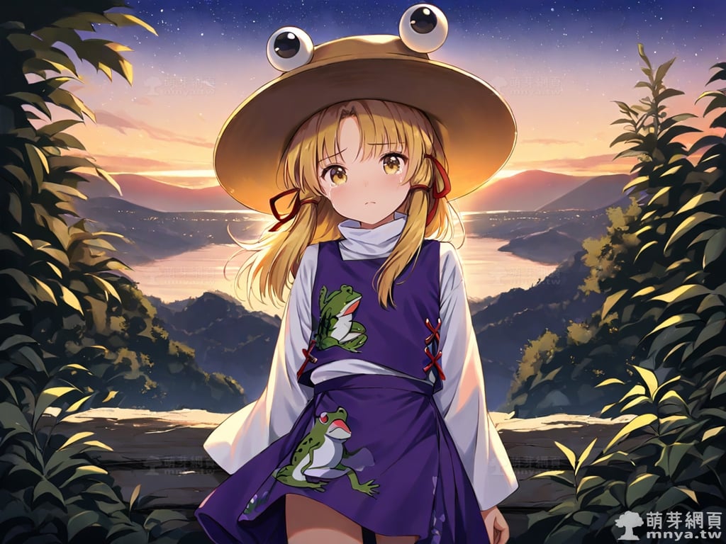 東方Project角色 AI 圖畫第一百五十五彈,此次的目標是「東方風神錄~ Mountain of Faith.」初次登場的「洩矢諏訪子」(洩矢 諏訪子,Moriya Suwako),守矢神社真正供奉的神明,擁有創造坤(地)程度的能力。她是一位金髮黃瞳的少女,髮型為中長髮,帶有長鬢角並束起。她經常戴著一頂獨特的青蛙帽,身上服裝也常有青蛙圖案。此外,她還穿著水袖和白色過膝襪,並以絲帶作為裝飾。在遠古時代,諏訪子曾擁有恐怖的信仰心,作為神明和王者建立了一個王國。在與神奈子的戰鬥中戰敗後,她選擇投降並交出王國,但由於神奈子無法獲得民眾信仰,兩人便轉為共同治理王國。隨著時間推逝,諏訪子逐漸被世人遺忘,少有人再知曉其真名。為此,神奈子決定將守矢神社遷至幻想鄉,使諏訪子得以展開新生活。值得一提的是,諏訪子是東風谷早苗的遠祖,但早苗對此毫不知情。她的出身地在外界,主要活動範圍為妖怪之山及間歇泉中心區域,並隸屬於守矢神社。使用 SDXL 模型直接生成,效果很不錯。總共產生 100 張,挑掉不合理跟瑕疵較多的有 15 張如下提供大家參考。