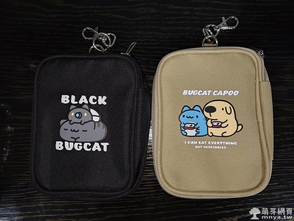 ▲ 黑貓蟲兄弟娃娃萬用收納痛包(黑)、咖波狗狗打電動娃娃萬用收納痛包(奶茶色) 包裝背面。