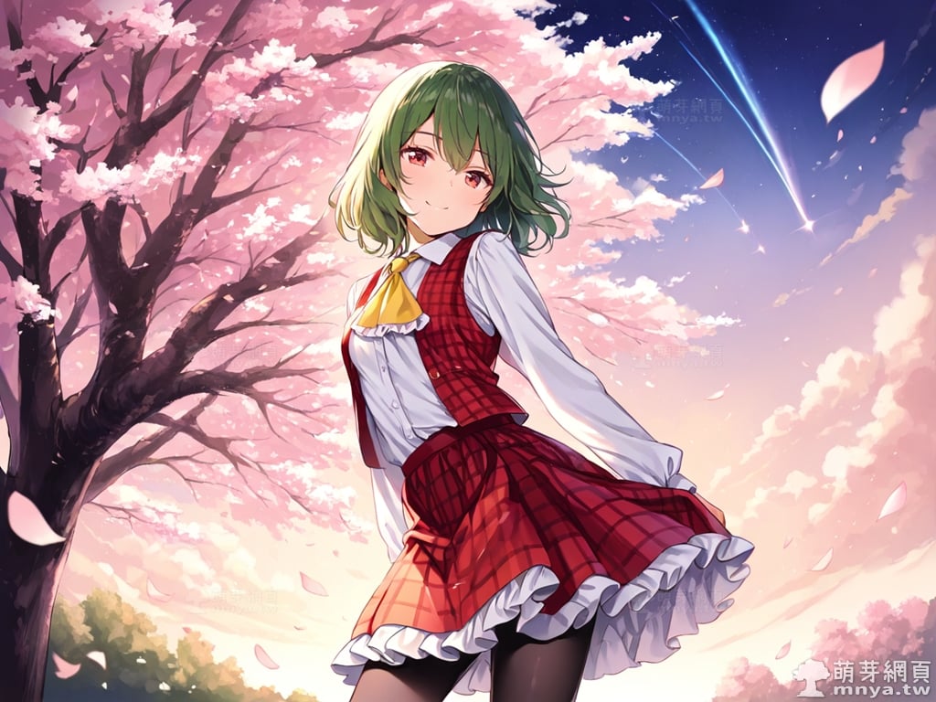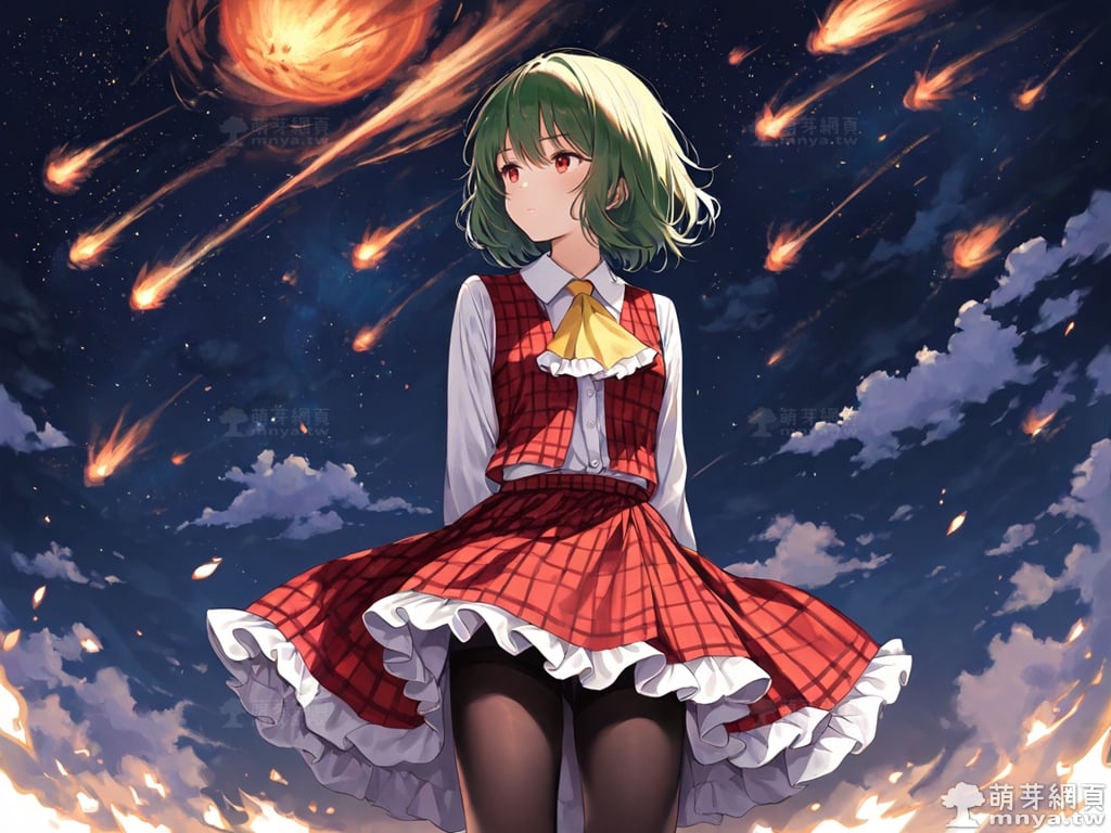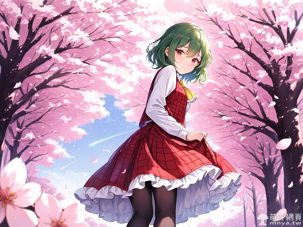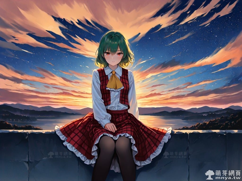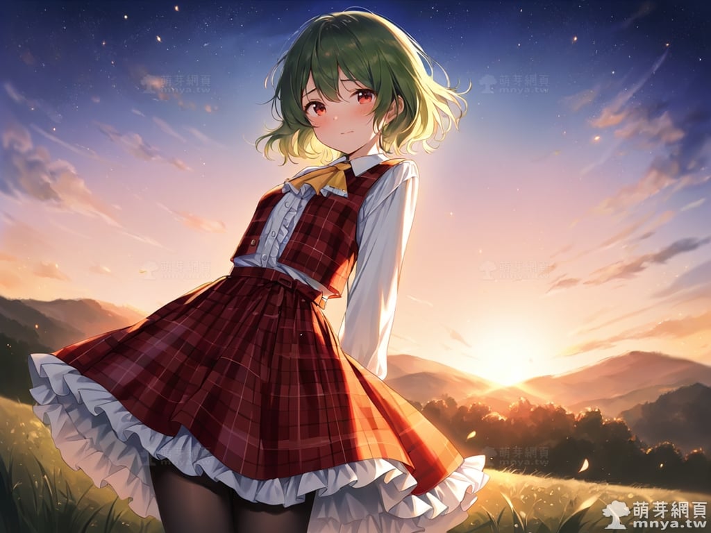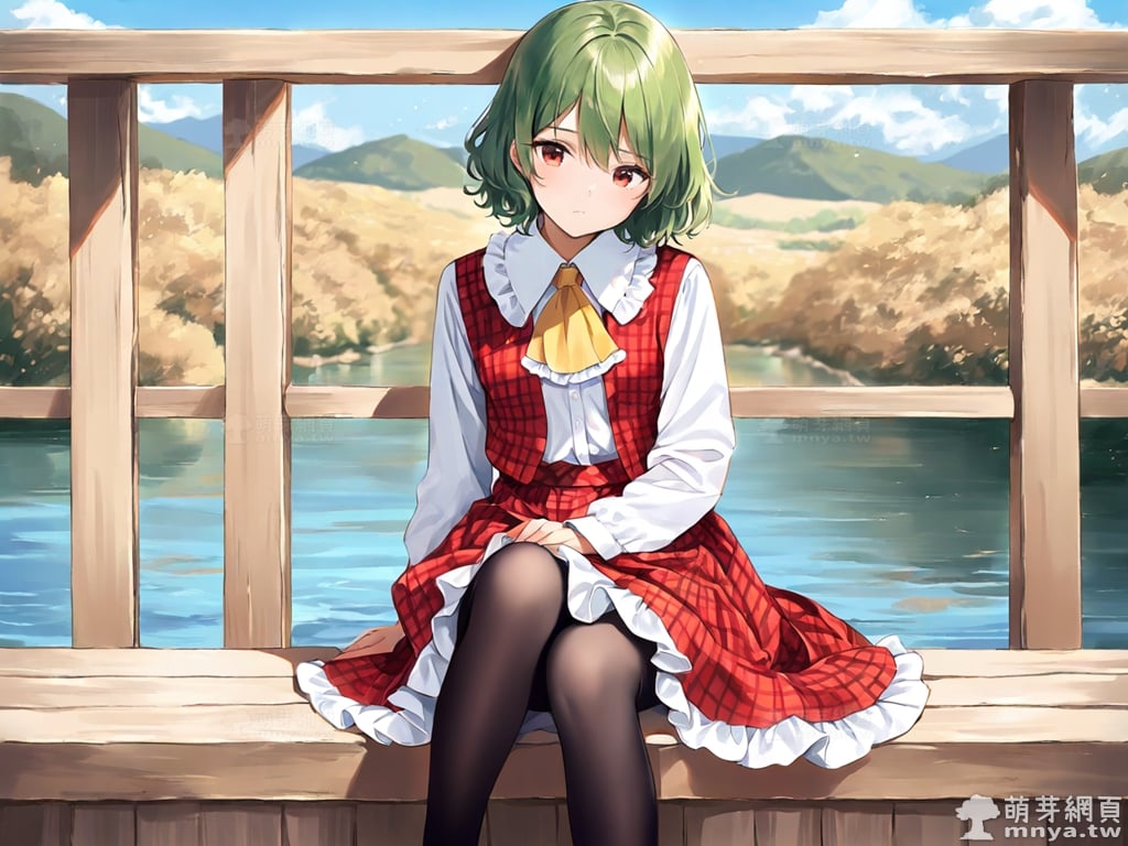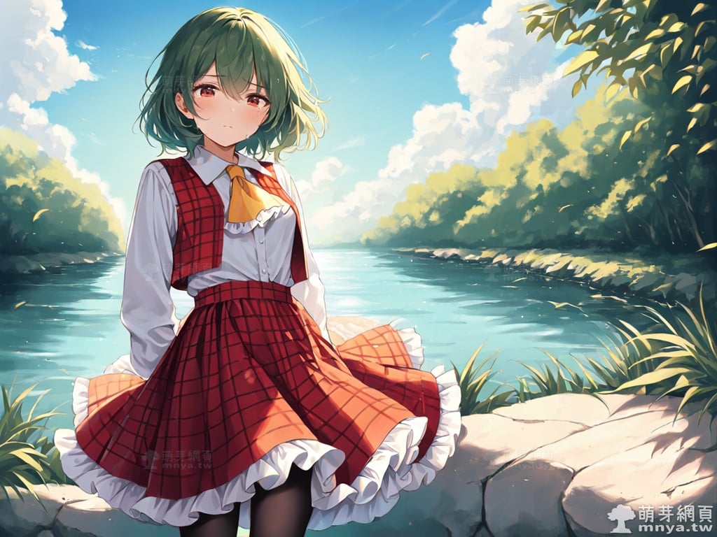 提詞文字:(masterpiece), (high quality), (high score), (great score), (year 2020), (kawaii), (loli), (photorealistic:0.1), 1girl, solo, (kazami yuuka), touhou, __posture__, short hair, green hair, hair between eyes, red eyes, ascot, black pantyhose, frilled skirt, frills, pantyhose, plaid clothes, plaid skirt, plaid vest, red shoes, red skirt, red vest, shirt, short hair, skirt, vest, white shirt, yellow ascot, shoes, medium breasts, breasts, cowboy shot, __looking__, __expression__, __background__.