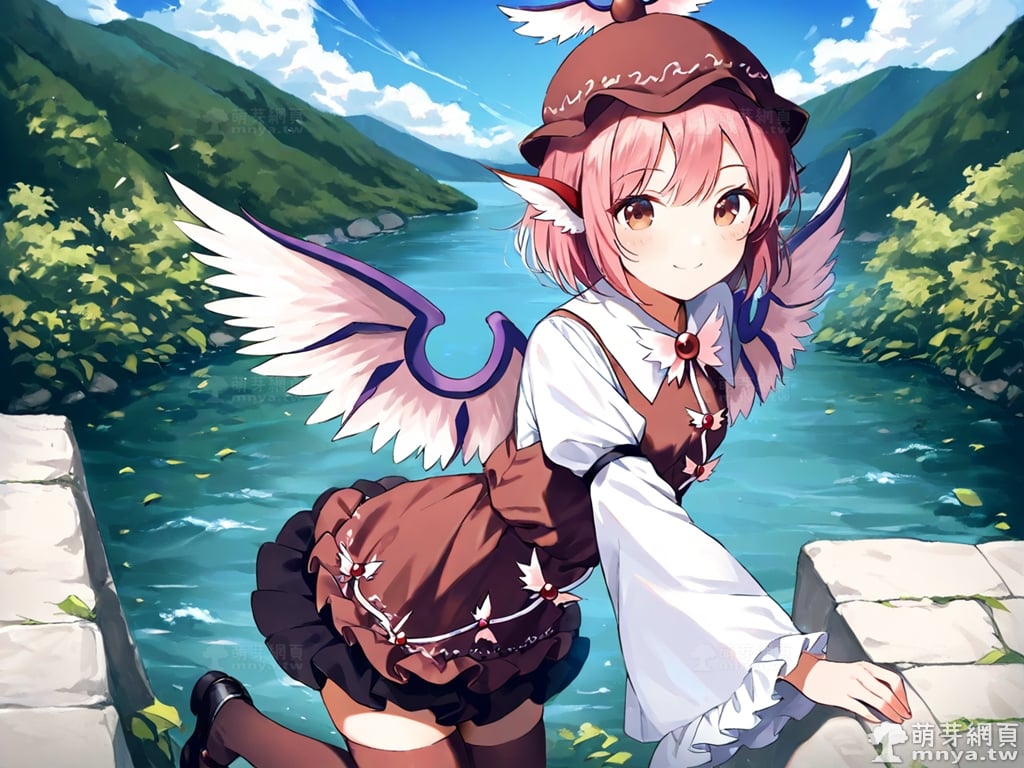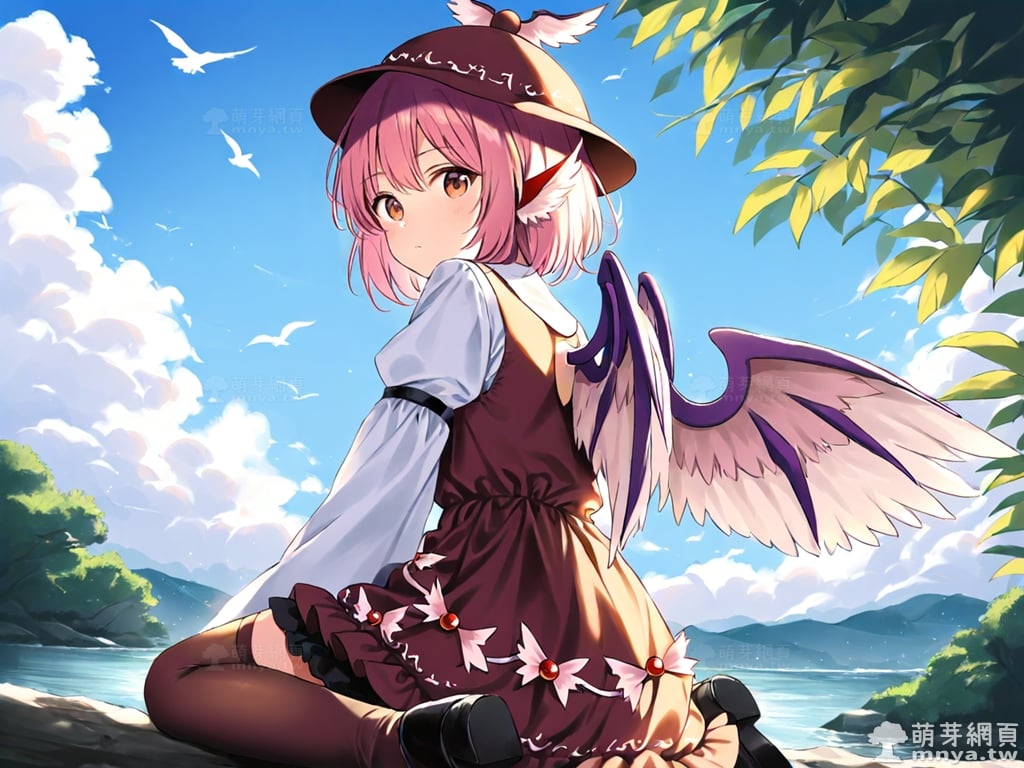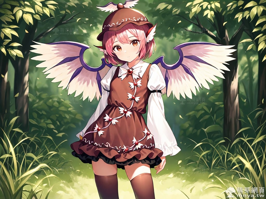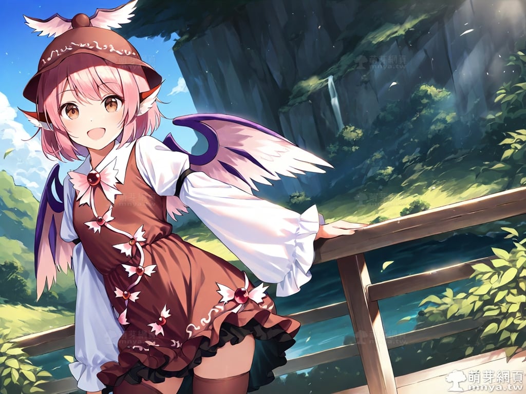 提詞文字:(masterpiece), (high quality), (high score), (great score), (year 2020), (kawaii), (loli), (photorealistic:0.1), 1girl, solo, (mystia lorelei), touhou, __posture__, short hair, pink hair, brown eyes, animal ears, bird ears, bird wings, brown dress, brown hat, brown thighhighs, dress, hat, long sleeves, thighhighs, wide sleeves, winged hat, wings, black shoes, shoes, small breasts, breasts, cowboy shot, __looking__, __expression__, __background__.