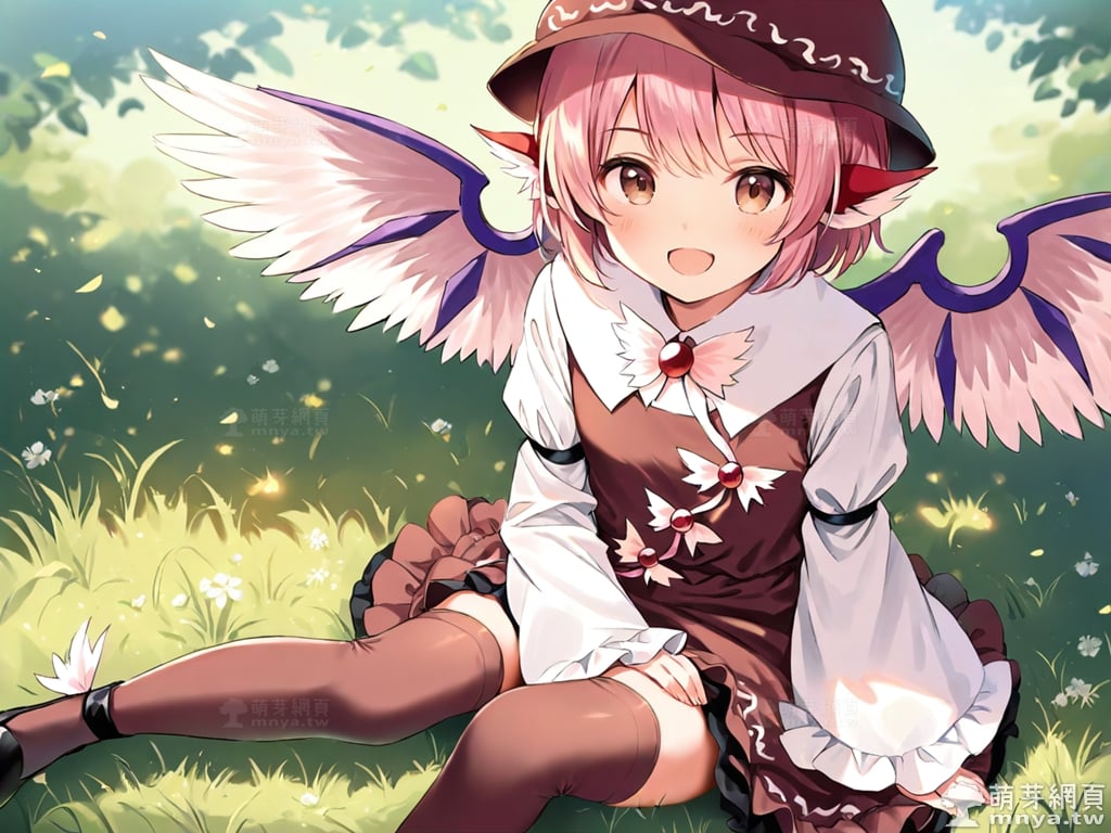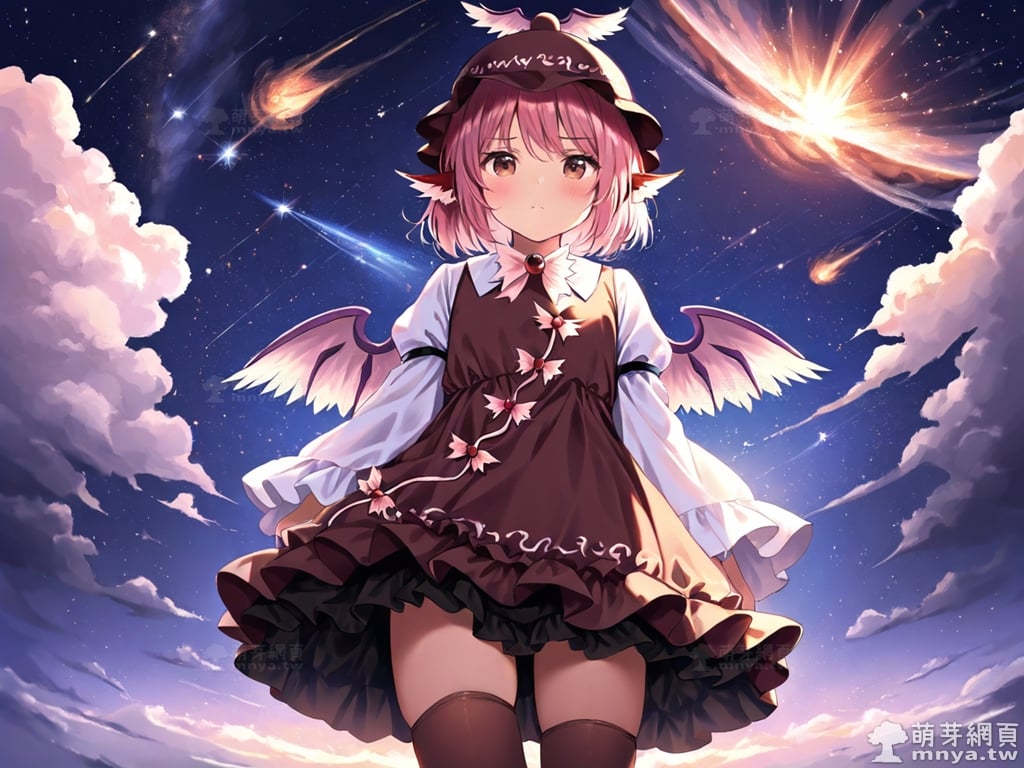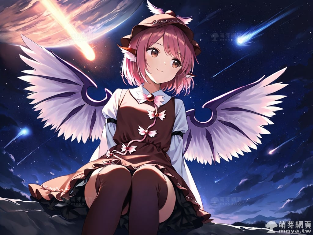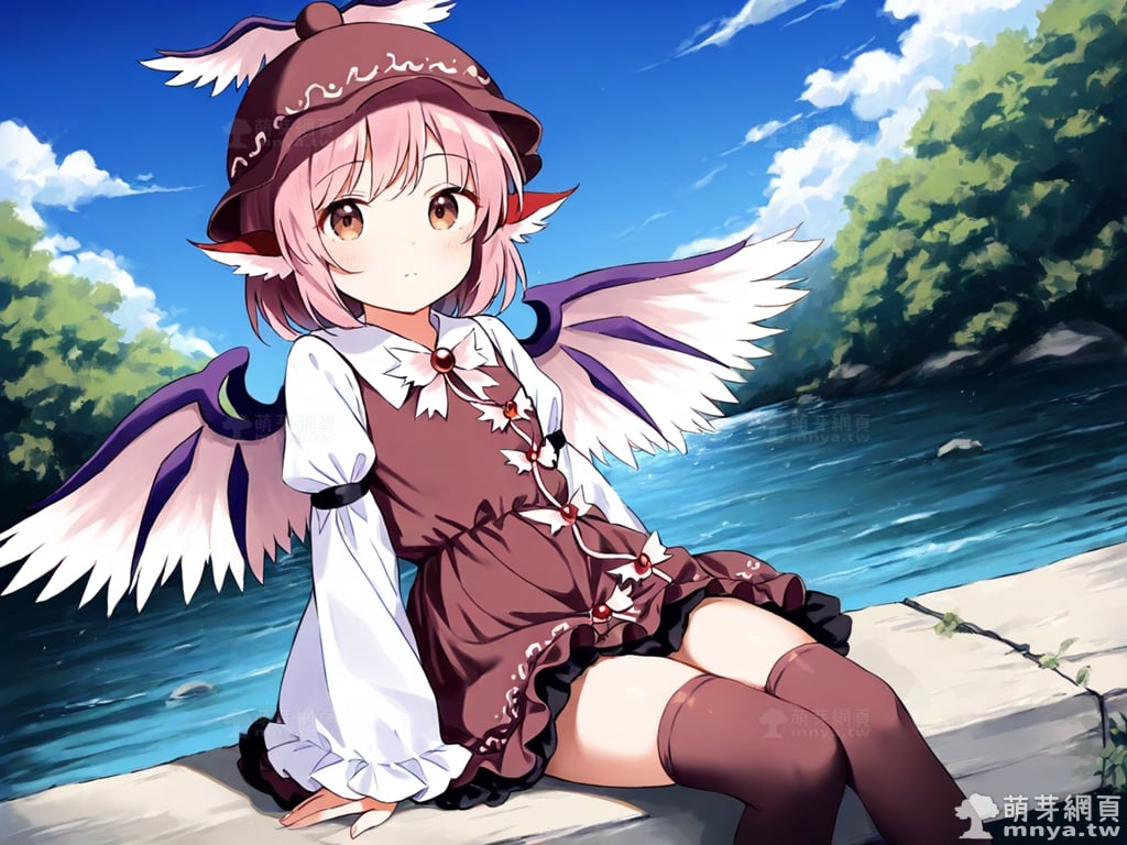 提詞文字:(masterpiece), (high quality), (high score), (great score), (year 2020), (kawaii), (loli), (photorealistic:0.1), 1girl, solo, (mystia lorelei), touhou, __posture__, short hair, pink hair, brown eyes, animal ears, bird ears, bird wings, brown dress, brown hat, brown thighhighs, dress, hat, long sleeves, thighhighs, wide sleeves, winged hat, wings, black shoes, shoes, small breasts, breasts, cowboy shot, __looking__, __expression__, __background__.