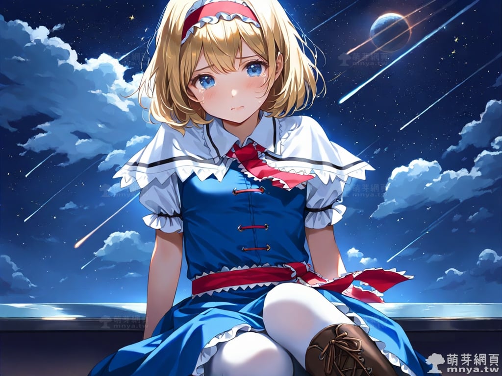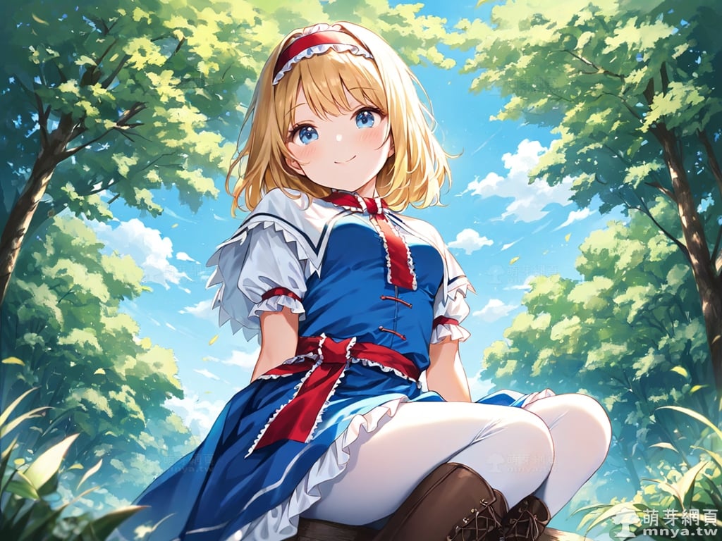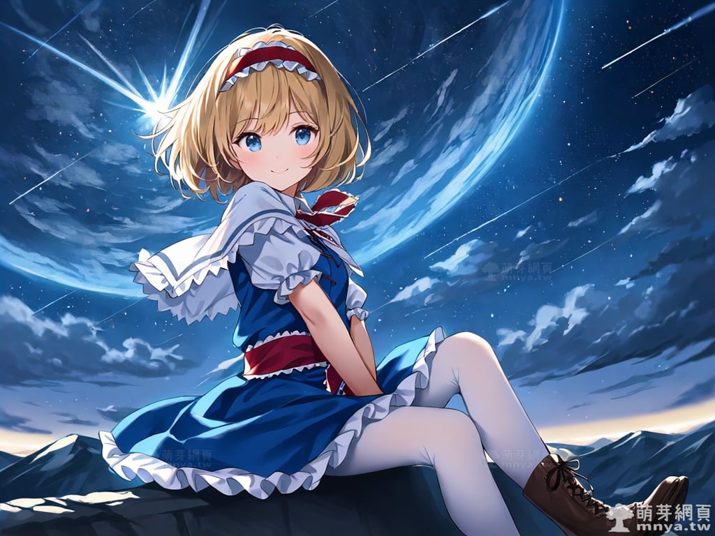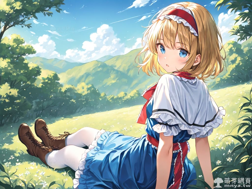 提詞文字:(masterpiece), (high quality), (high score), (great score), (year 2020), (kawaii), (loli), (photorealistic:0.1), 1girl, solo, (alice margatroid), touhou, __posture__, short hair, blonde hair, red hairband, lolita hairband, frilled hairband, hairband, blue eyes, blue dress, capelet, dress, frilled dress, frilled capelet, frilled sash, frills, pantyhose, puffy short sleeves, puffy sleeves, red sash, sash, short sleeves, waist sash, white capelet, white pantyhose, lace-up boots, shoes, boots, brown boots, medium breasts, breasts, cowboy shot, __looking__, __expression__, __background__.