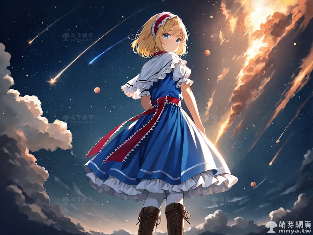 東方Project角色 AI 圖畫第一百七十一彈,此次的目標是「東方妖妖夢~ Perfect Cherry Blossom.」初次登場的「愛麗絲・瑪格特洛依德」(アリス・マーガトロイド,Alice Margatroid),一位居住在魔法森林的魔法使,擁有操控人偶與魔法的能力,儘管在魔法使中仍屬新人,但她對人類保持著較高的友好度,甚至會收留迷路的人類。她有著一頭亮麗的金髮,以及清澈的藍色瞳孔,搭配著短髮與髮箍,整體造型呈現出魔法少女般的可愛氣質。她擅長製作人偶,並能同時操控多隻人偶進行家事或戰鬥,其手指的靈活度在幻想鄉中堪稱首屈一指。愛麗絲所製作的人偶種類多樣,有些甚至能自爆,這使得她在決鬥中即便面對多個對手也能游刃有餘。她的孤僻與其精細的人偶操縱能力一樣為人所知,而她平常則居住在魔法森林的洋房中。使用 SDXL 模型直接生成,效果很不錯。總共產生 100 張,挑掉不合理跟瑕疵較多的有 18 張如下提供大家參考。