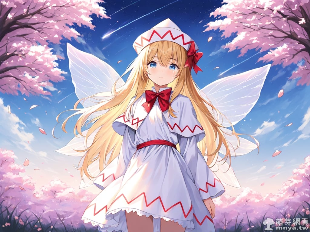 東方Project角色 AI 圖畫第一百七十二彈,此次的目標是「東方妖妖夢~ Perfect Cherry Blossom.」初次登場的「莉莉霍瓦特」(リリーホワイト,Lily White),一位宣告春天來臨的妖精,她的能力是能讓所經之處出現春天的暖氣。除了春天之外,她鮮少出現,因此也被稱為春之季語。她的種族是妖精,來自幻想鄉。她擁有一頭柔順的金髮,並配戴著一頂紅色蝴蝶結的白色帽子。她那雙天真無邪的藍色眼眸閃爍著光芒,身後則是一對美麗的翅膀。使用 SDXL 模型直接生成,效果很不錯。總共產生 100 張,挑掉不合理跟瑕疵較多的有 6 張如下提供大家參考。