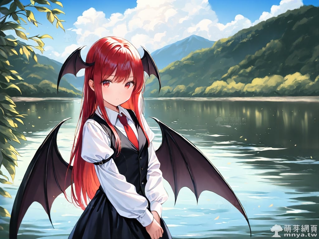 東方Project角色 AI 圖畫第一百八十二彈,此次的目標是「東方紅魔鄉~ the Embodiment of Scarlet Devil.」初次登場的「小惡魔」(小悪魔,Koakuma),一名惡魔雜魚角色。在遊戲事件發生時,她出現在紅魔館內,是紅魔館的成員之一,很多人認為她是帕秋莉的助手。關於她的官方資料非常少,不過普遍相信她擁有能瞬間找出所需書籍的能力,因此活動範圍可能主要是在紅魔館內的大圖書館。從外型上看,小惡魔有著一頭亮眼的紅色長髮,並擁有一雙呼應髮色的紅瞳,這讓她看起來格外生動。她背後有一對巨大的蝙蝠翅膀。她穿著一身黑色的連衣裙,搭配白色的襯衫和紅色的領帶,給人一種圖書管理員的感覺。使用 SDXL 模型直接生成,效果很不錯。總共產生 100 張,挑掉不合理跟瑕疵較多的有 16 張如下提供大家參考。
