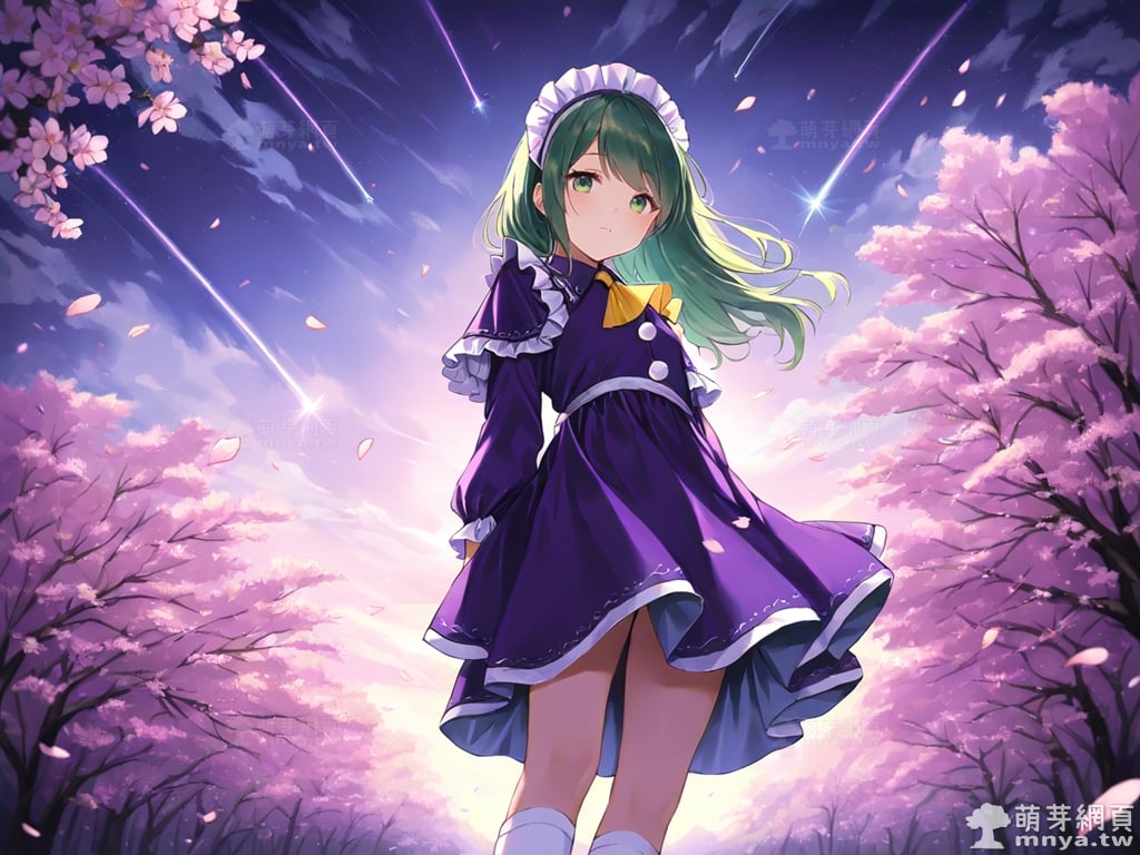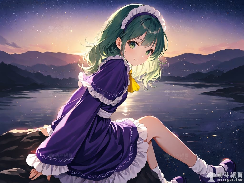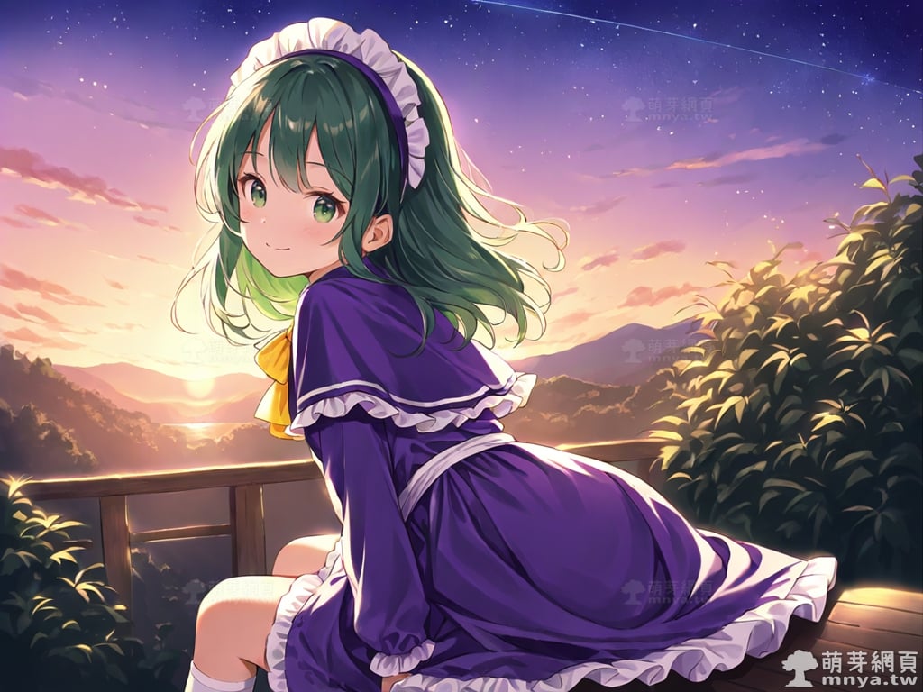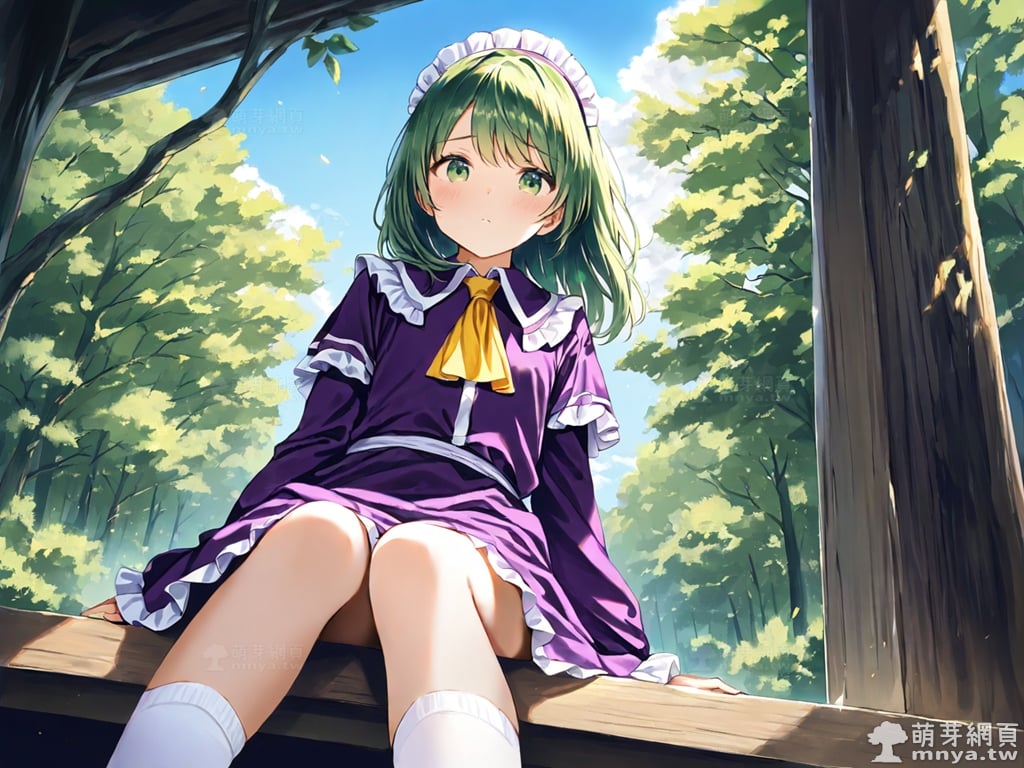 提詞文字:(masterpiece), (high quality), (high score), (great score), (year 2020), (kawaii), (loli), (photorealistic:0.1), 1girl, solo, (layla prismriver), touhou, __posture__, long hair, green hair, green eyes, ascot, capelet, dress, frilled capelet, frilled sleeves, frills, long sleeves, maid headdress, mary janes, purple capelet, purple dress, purple sleeves, purple shoes, shirt, shoes, socks, white shirt, white socks, yellow ascot, small breasts, breasts, cowboy shot, __looking__, __expression__, __background__.