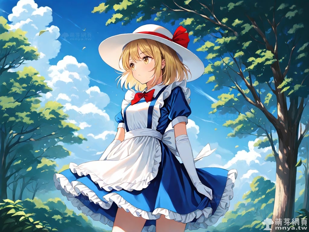 東方Project角色 AI 圖畫第兩百零五彈,此次的目標是「東方夢時空~ Phantasmagoria of Dim.Dream.」初次登場的「卡娜・安娜貝拉爾」(カナ・アナベラル,Kana Anaberal),一位由精神不安定的少女所產生的騷靈,平時主要棲息在一棟大洋館中。然而,由於洋館裡的居民已經對她的存在習以為常,無法再被嚇到,她正考慮搬家。在《夢時空》的故事中,她因為喜歡熱鬧,不知不覺間被「夢幻遺跡」中激烈的彈幕戰鬥所吸引。這名金髮金瞳的少女穿著一件藍色的洋裝,配上白色圍裙和袖口,看起來相當精緻可愛。她戴著一頂白色的遮陽帽,帽緣以一條紅色的緞帶作為裝飾,並在後方繫成一個大大的蝴蝶結。使用 SDXL 模型直接生成,效果很不錯。總共產生 100 張,挑掉不合理跟瑕疵較多的有 11 張如下提供大家參考。