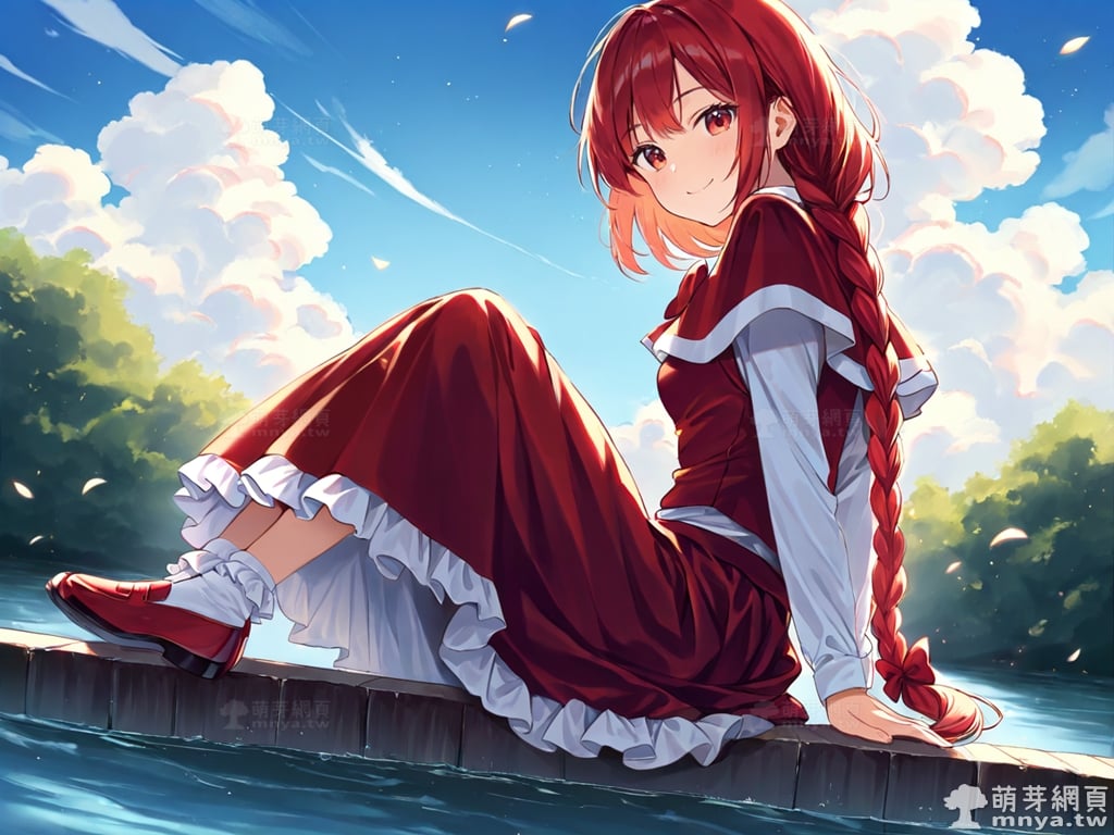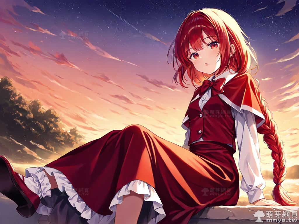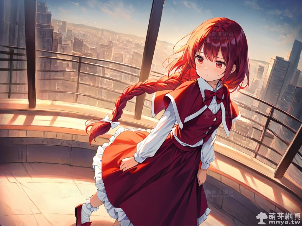 提詞文字:(masterpiece), (high quality), (high score), (great score), (year 2020), (kawaii), (loli), (photorealistic:0.1), 1girl, solo, (okazaki yumemi), touhou, __posture__, long hair, very long hair, long braid, single braid, braid, red hair, red eyes, bow, capelet, frilled skirt, frilled socks, frills, long skirt, red bow, red capelet, red shoes, red skirt, red vest, shirt, shoes, skirt, socks, vest, white shirt, white socks, medium breasts, breasts, cowboy shot, __looking__, __expression__, __background__.