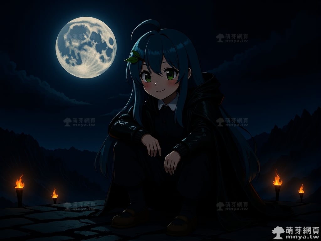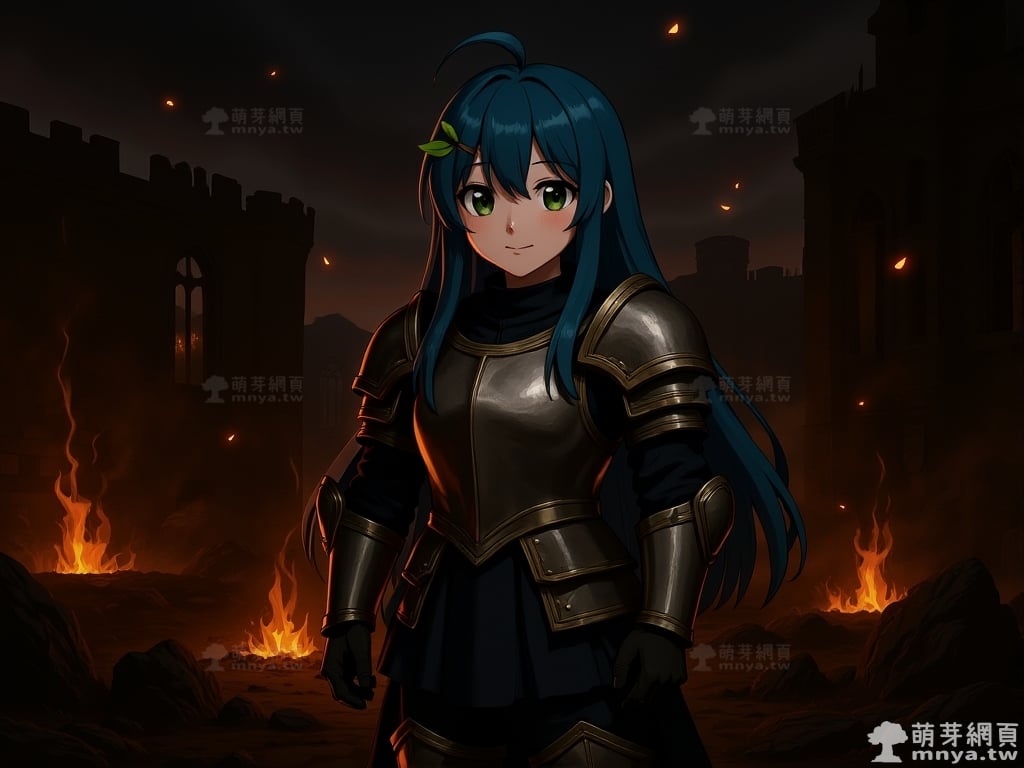 萌芽娘(MNYA Niang),生日為 2015 年 2 月 3 日,是一個人類種族的角色,擔任萌芽系列網站的代表吉祥物,負責守護萌芽網頁。這次的 AI 繪圖創作,將她置入黑暗異世界的舞台,在那裡,古老的遺跡、殘破的城堡、月光下的森林與戰火紛飛的戰場交錯,勾勒出一個既神秘又夢幻的世界。在這片土地上,她不再只是單純的吉祥物,而是透過不同身份與角色,展現冒險旅途中的多重面貌。