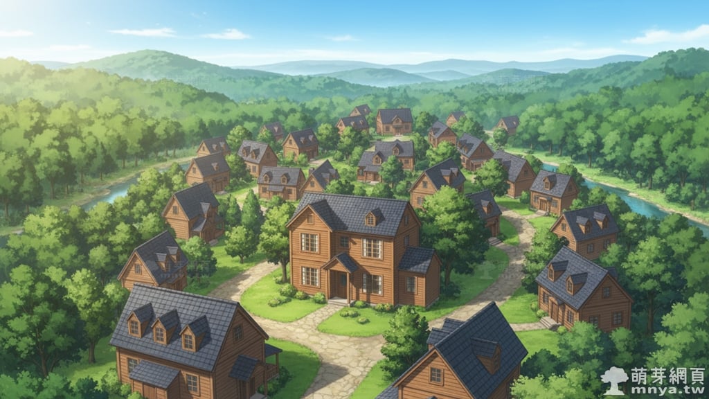 ▲ 最後,鏡頭緩緩拉遠,整座被綠意包圍的小鎮映入眼簾。這裡是萌芽娘溫馨的家園,也是她每日故事的起點。陽光、微風與木屋構成了寧靜而溫暖的日常背景,為這段早晨篇章劃下柔和的句點。