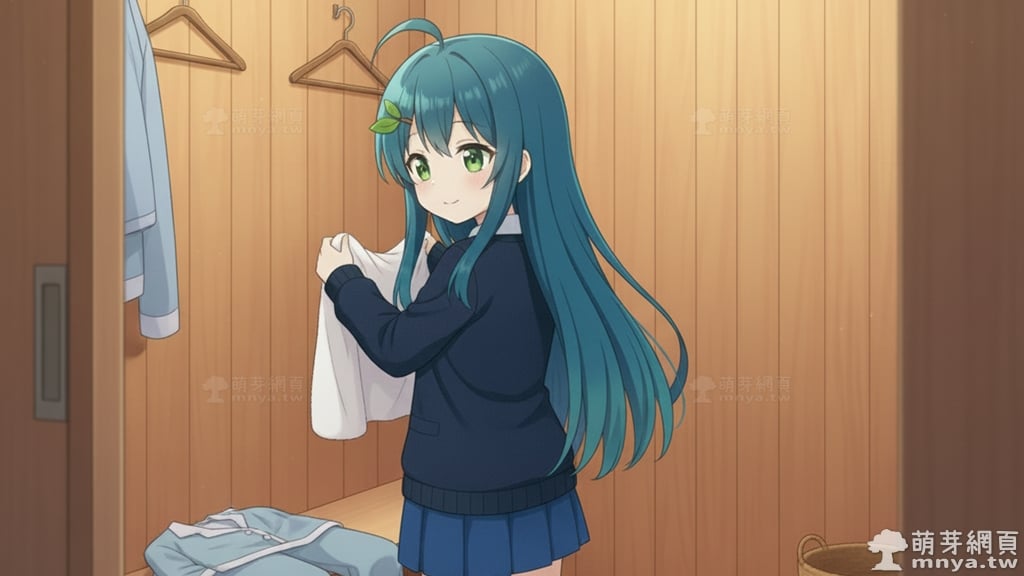 ▲ 換上整齊的服裝後,萌芽娘的精神也跟著煥然一新。她從容地將睡衣收好,象徵著早晨的生活節奏正式展開。