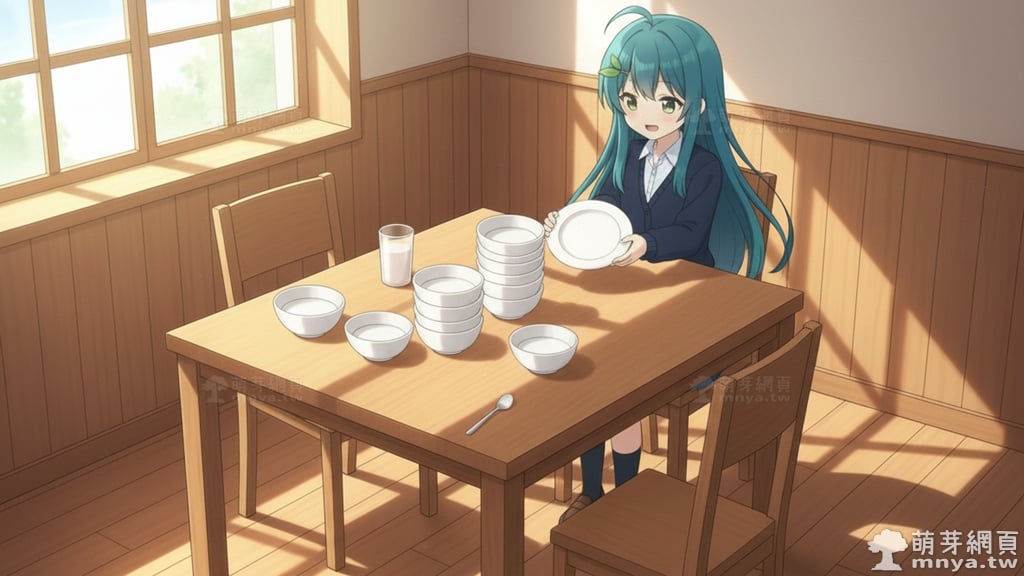 ▲ 吃完早餐後,她仔細地將餐盤收拾好。雖然只是日常的一部分,但對萌芽娘來說,每個小步驟都充滿意義。