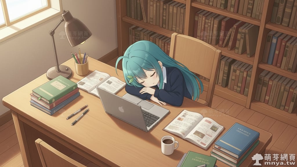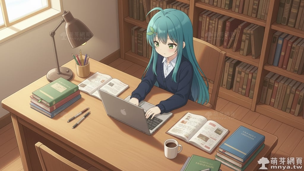 ▲ 早餐結束後,萌芽娘坐在書桌前,打開筆電投入學習與工作。整齊的書桌與溫暖的光線,為她的一天奠定穩定的步調。