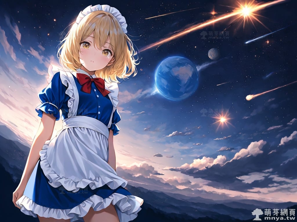 東方Project角色 AI 圖畫第兩百一十七彈,此次的目標是「東方幻想鄉~ Lotus Land Story.」初次登場的「夢月」(夢月,Mugetsu),幻月的雙胞胎妹妹,一同主宰著無名夢境世界。夢月是一位惡魔,活動範圍與出身地區皆為無名夢境世界。她打扮成女僕,態度高冷,雖然自稱「這個世界是我的世界」且「對人類的生命毫不在意」,卻意外被身為人類的自機擊敗,隨後因姐姐幻月的登場而退場。她的外型特徵包括女僕裝、撲克臉、短髮和領結。夢月留著一頭亮麗的金髮,搭配一雙金色的眼瞳。使用 SDXL 模型直接生成,效果很不錯。總共產生 100 張,挑掉不合理跟瑕疵較多的有 6 張如下提供大家參考。