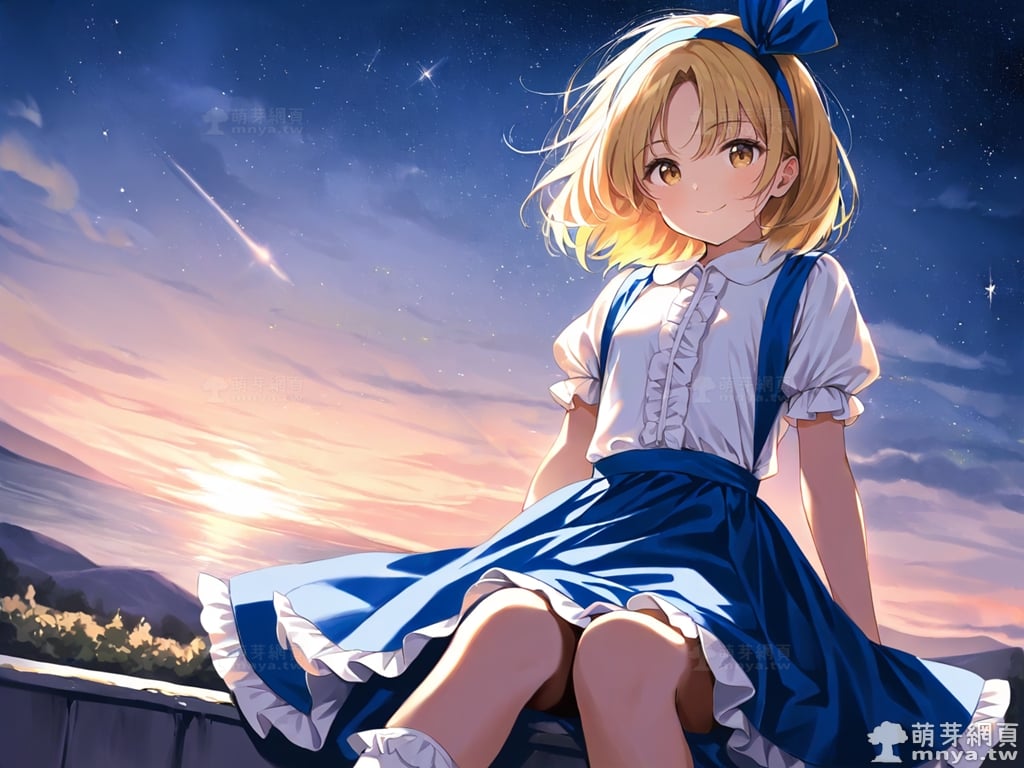 提詞文字:(masterpiece), (high quality), (high score), (great score), (year 2020), (kawaii), (loli), (photorealistic:0.1), 1girl, solo, (alice margatroid \(pc-98\)), touhou, __posture__, short hair, blonde hair, parted bangs, blue hairband, hairband, blue ribbon, ribbon, hair between eyes, yellow eyes, blue skirt, bobby socks, frilled skirt, frills, puffy short sleeves, puffy sleeves, shirt, short sleeves, skirt, socks, white shirt, white socks, small breasts, breasts, cowboy shot, __looking__, __expression__, __background__.